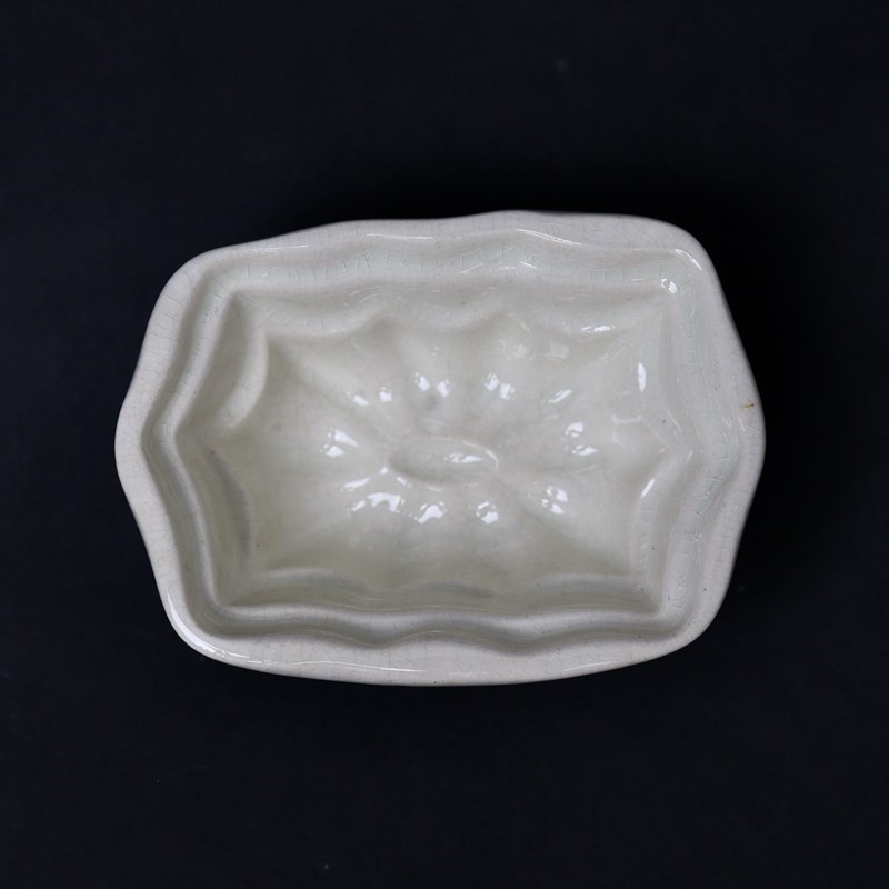 A miniature Minton mould in the shape of a marquee. This is marked “MINTON” and it is also impressed with the pattern number “No 21” over “2”. The pattern number corresponds to Minton’s 1848 catalogue. It is made from quite a light earthenware and it dates from c.1850. It is well moulded and it would turn out well. There is a very tiny chip to the foot but otherwise it is in good condition.