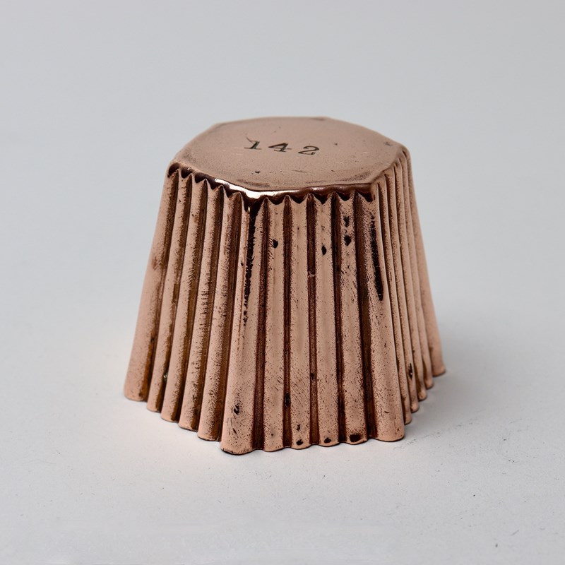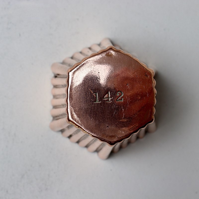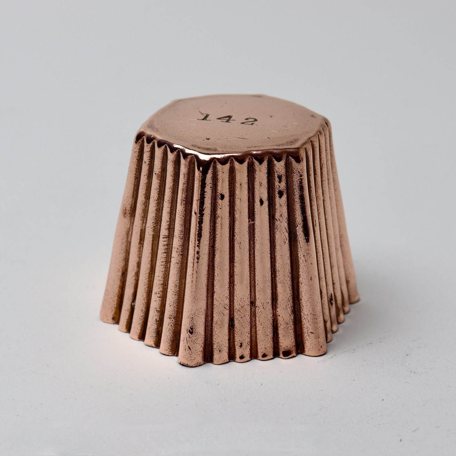 A 19th century, six sided, miniature copper mould of tapered, fluted form. This is made from a substantial gauge of copper, it is English and it dates from c.1880. The top is stamped with the pattern number “142”. It is in excellent condition and the tinning, to the interior, is still in very good, bright, usable condition.