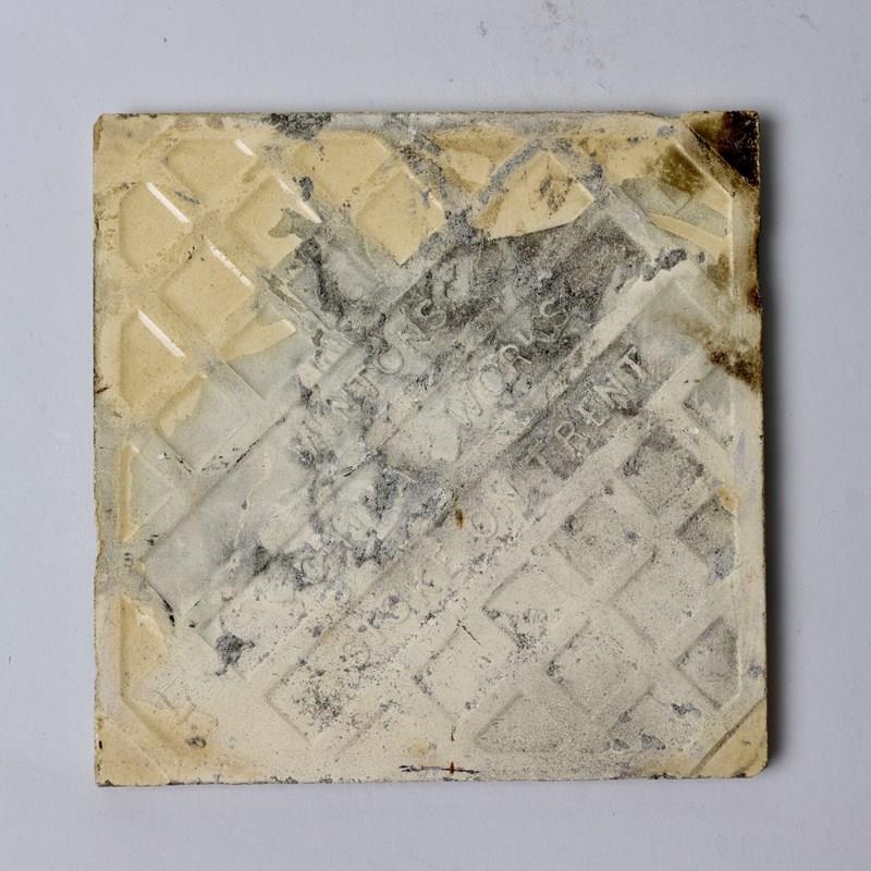 A nineteenth century, Minton, dust pressed tile from a series depicting the trades. This tile is marked “MINTONS CHINA WORKS STOKE ON TRENT” in the moulding. This series was designed by Moyr Smith and was produced in many different colours. This example is block printed in brown, on a buff background, with “The DYER”. It dates from c.1880 and is in excellent condition.