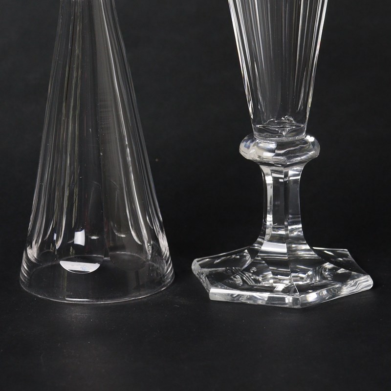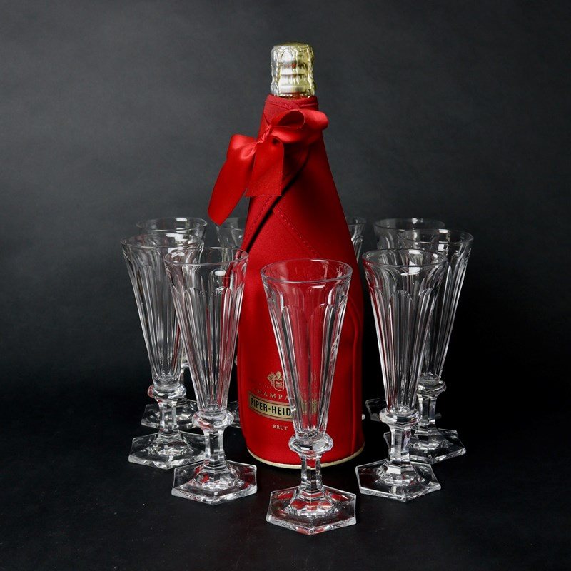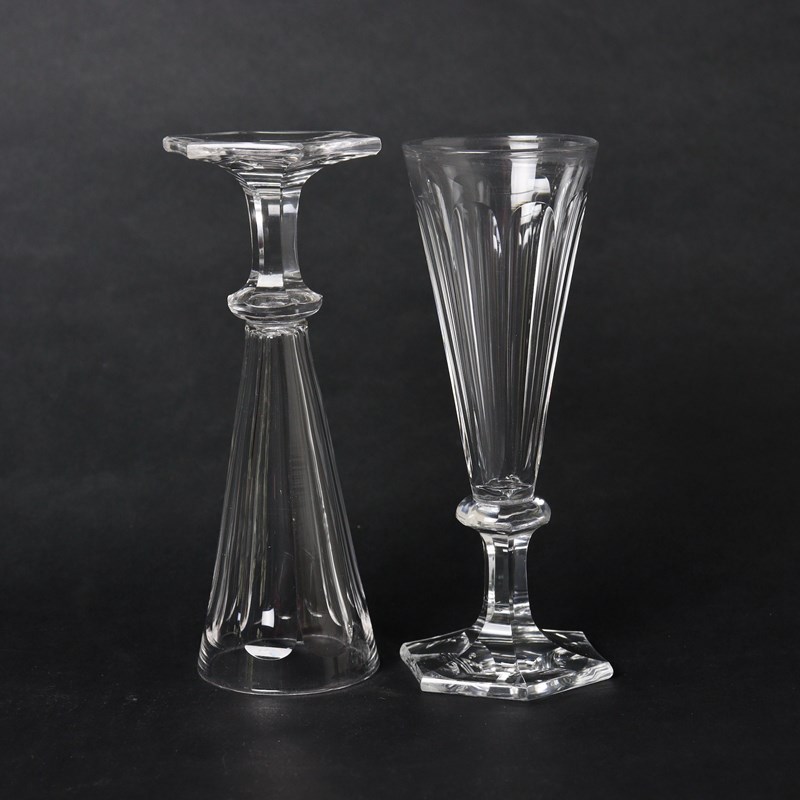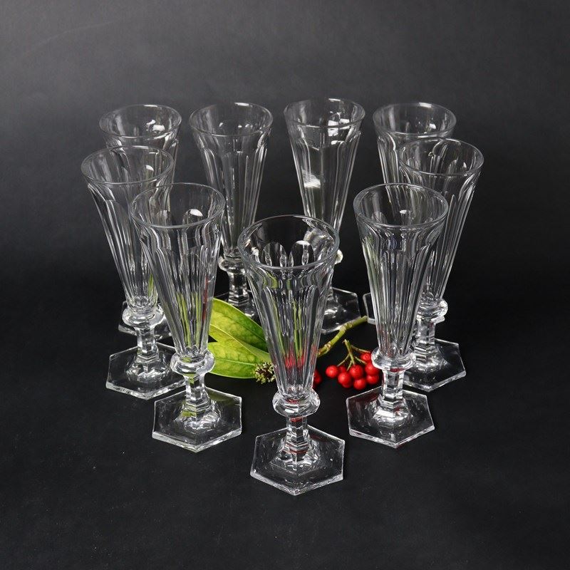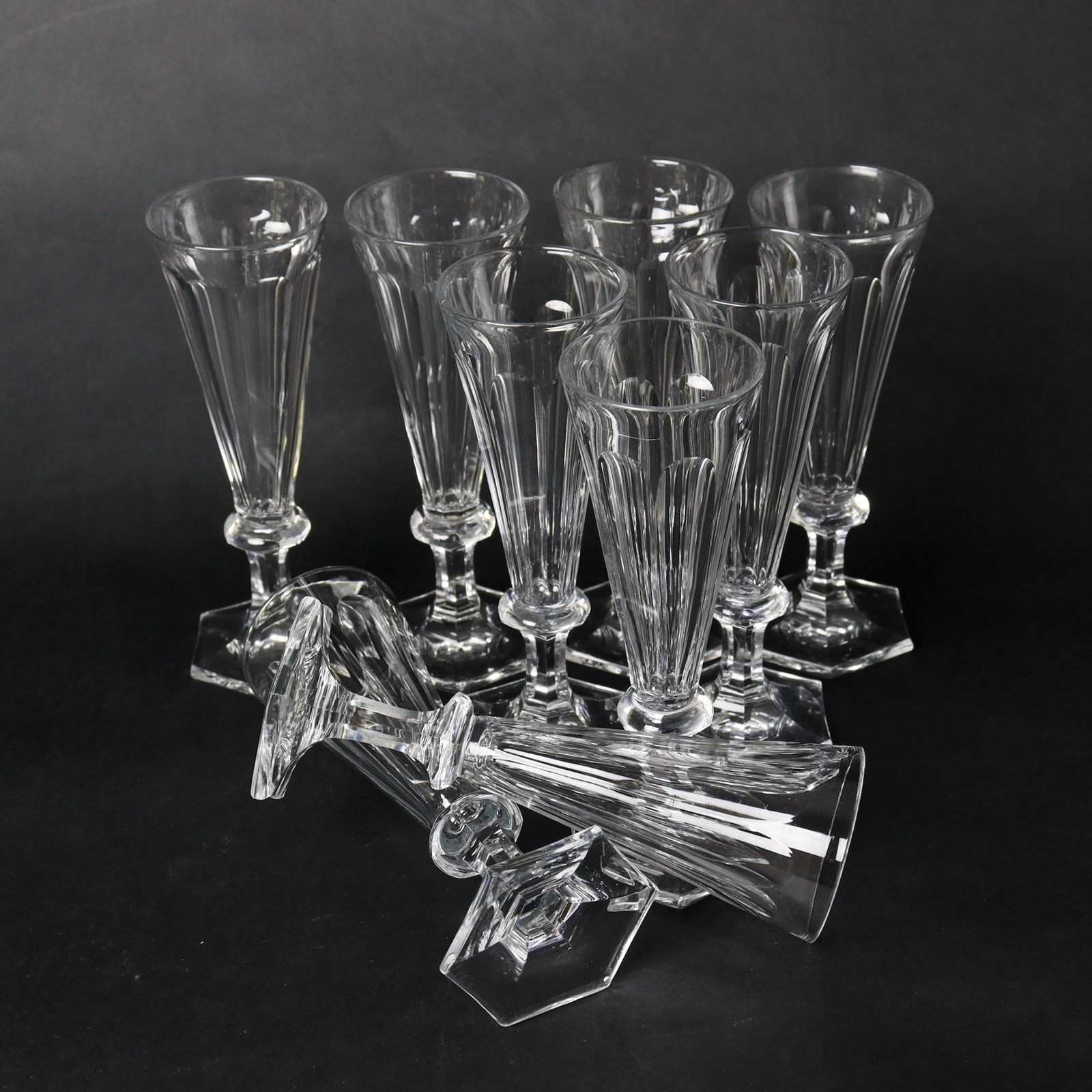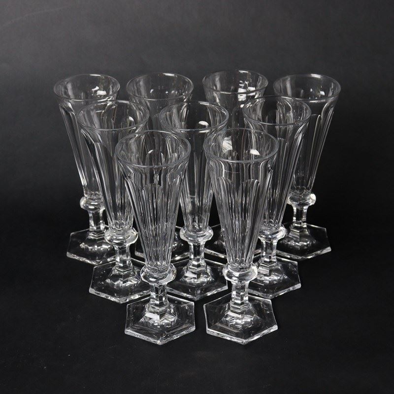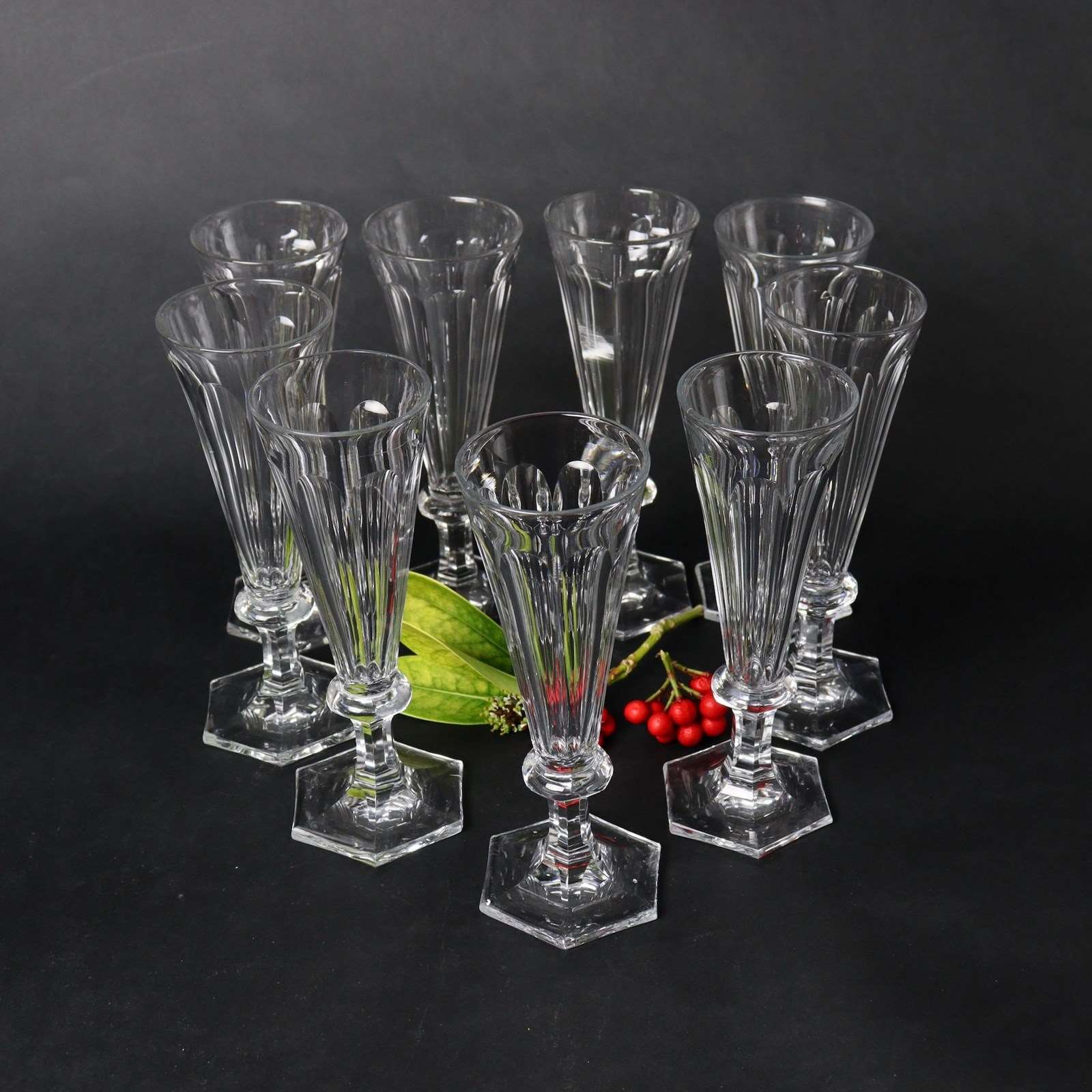 Nine Hexagonal Stemmed French Crystal Champagne Flutes