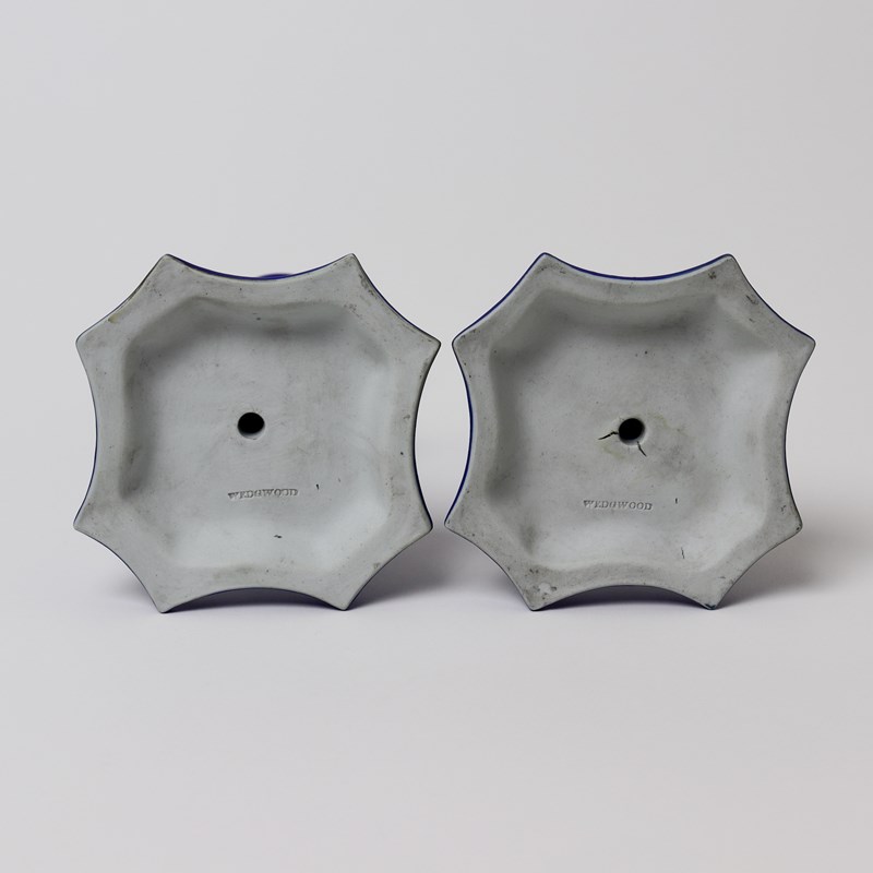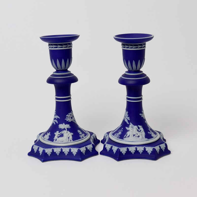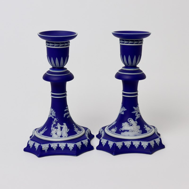 Pair Of Early Victorian, Wedgwood Blue Jasper Candlesticks