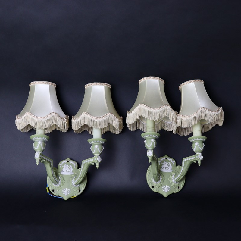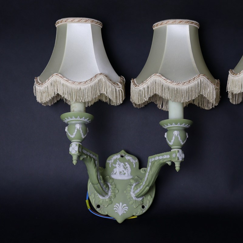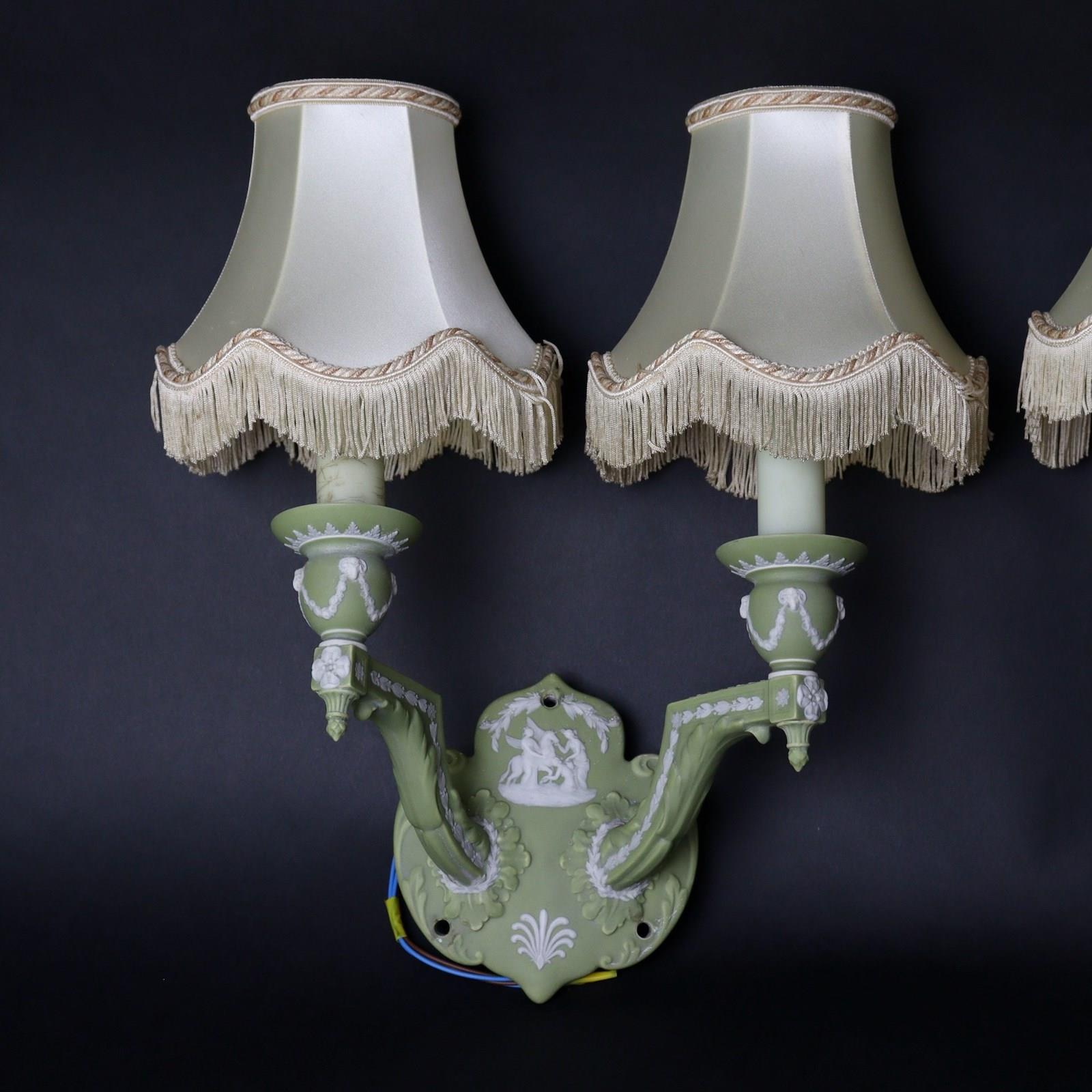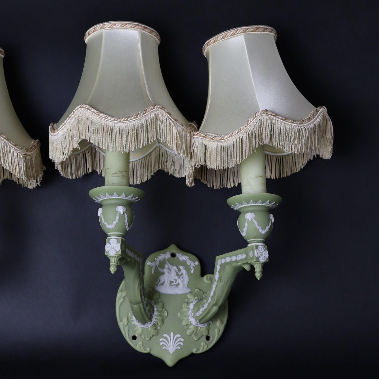 Pair Of Rare, Wedgwood, Green Jasper Wall Lights