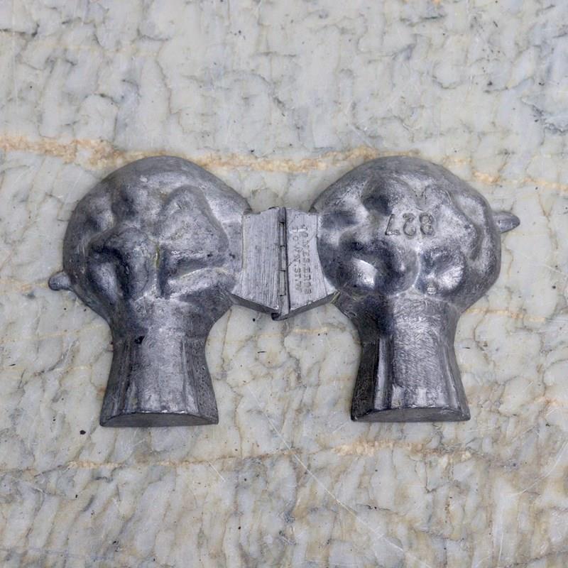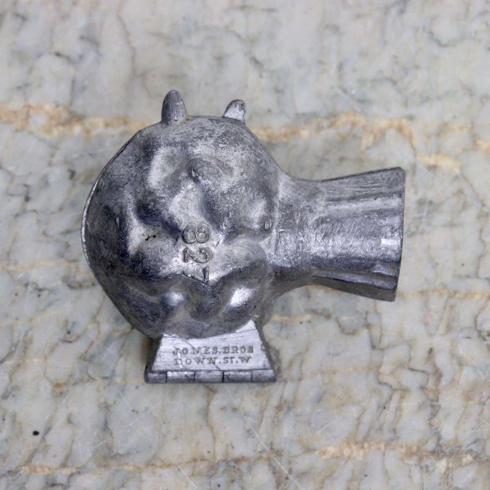 A lovely quality, pewter ice cream mould in the shape of a bouquet of flowers. This is marked, in the casting, “JONES BROS. DOWN ST. W.” and it also has the pattern number “827”. It dates from c.1880. It is very well detailed to the interior and would turn out very well. It is in excellent condition. The exterior has quite a dark patina and the interior is in very good, bright, usable condition.