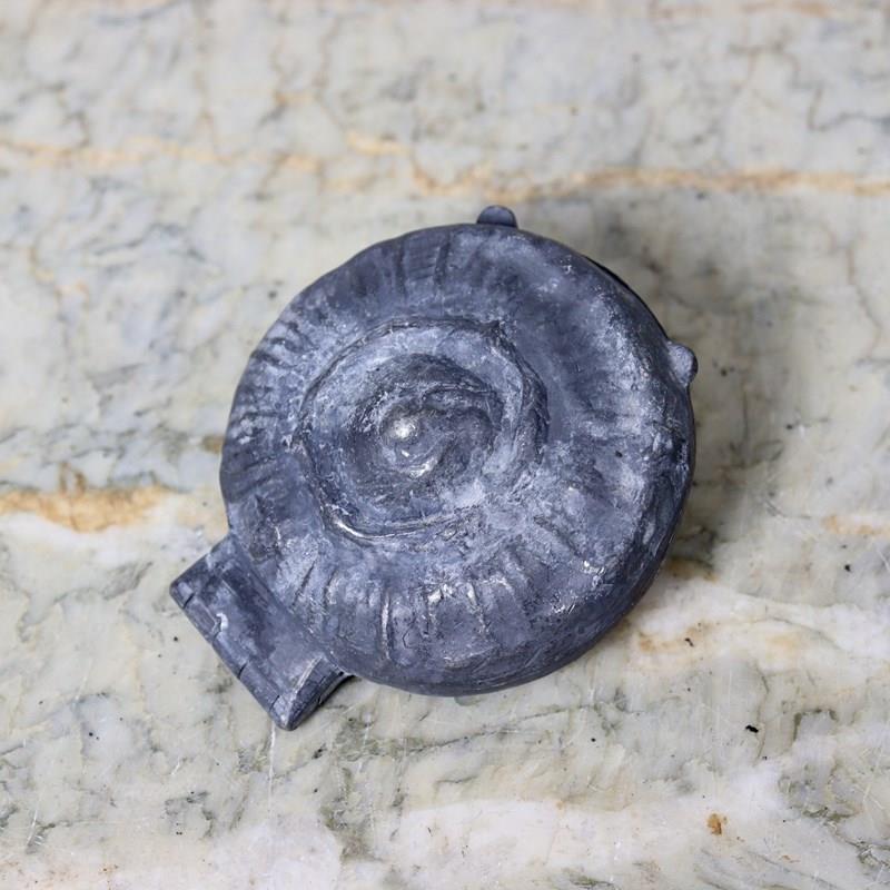A small, 19th century, pewter ice cream mould in the shape of a sunflower. This is English and dates from c.1860. The sunflower is beautifully detailed and would turn out well. It is in good condition. The interior is quite dark, but still usable, and the exterior shows signs of age and wear.