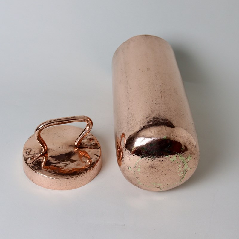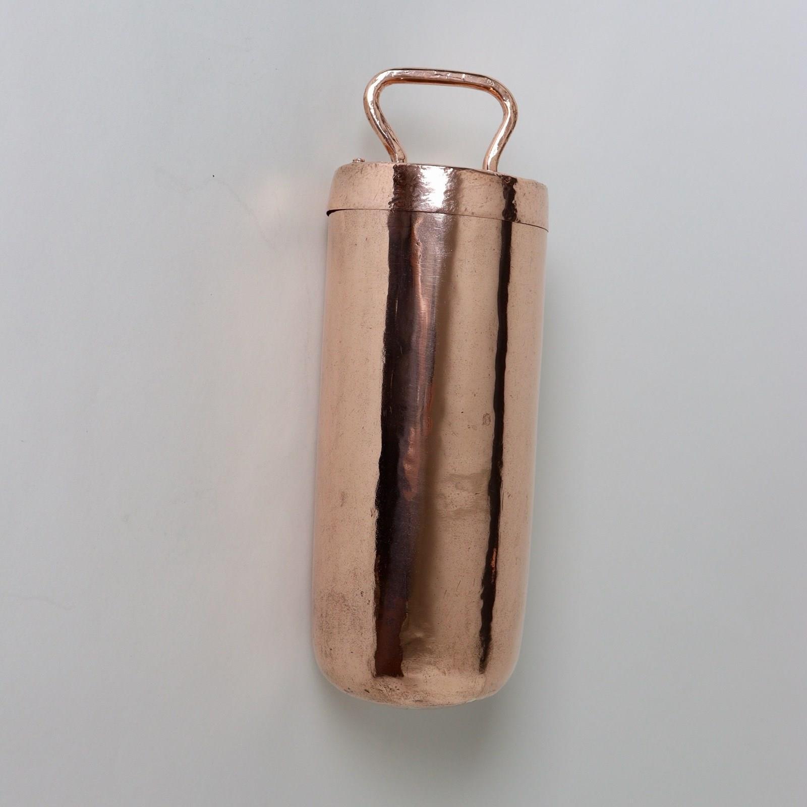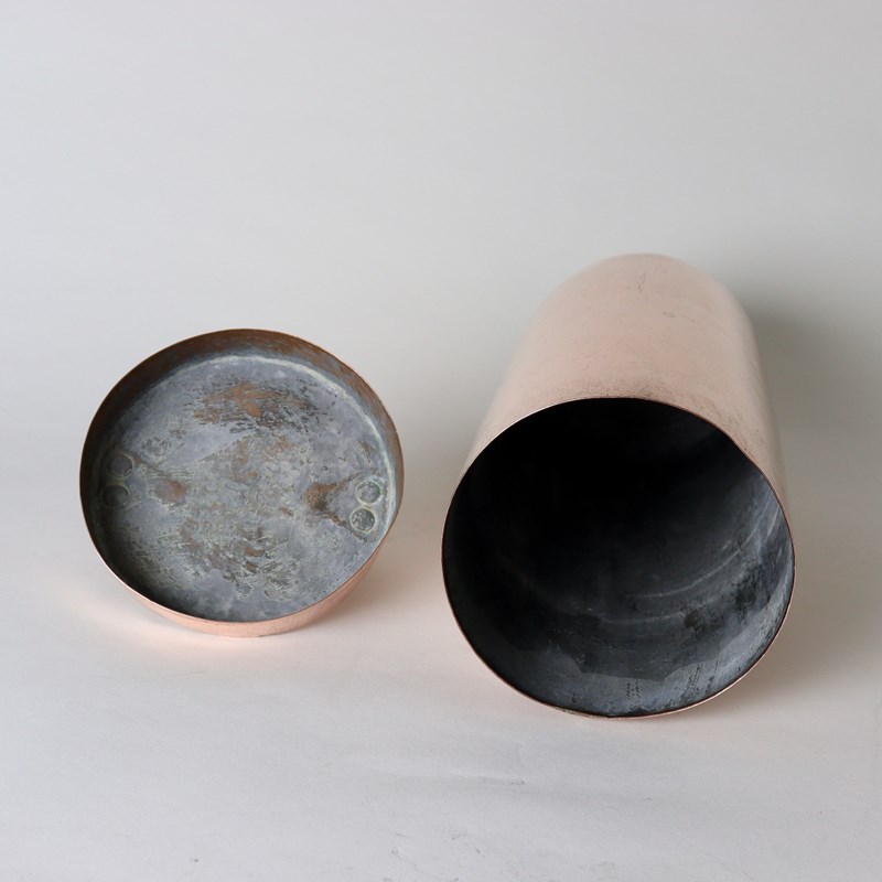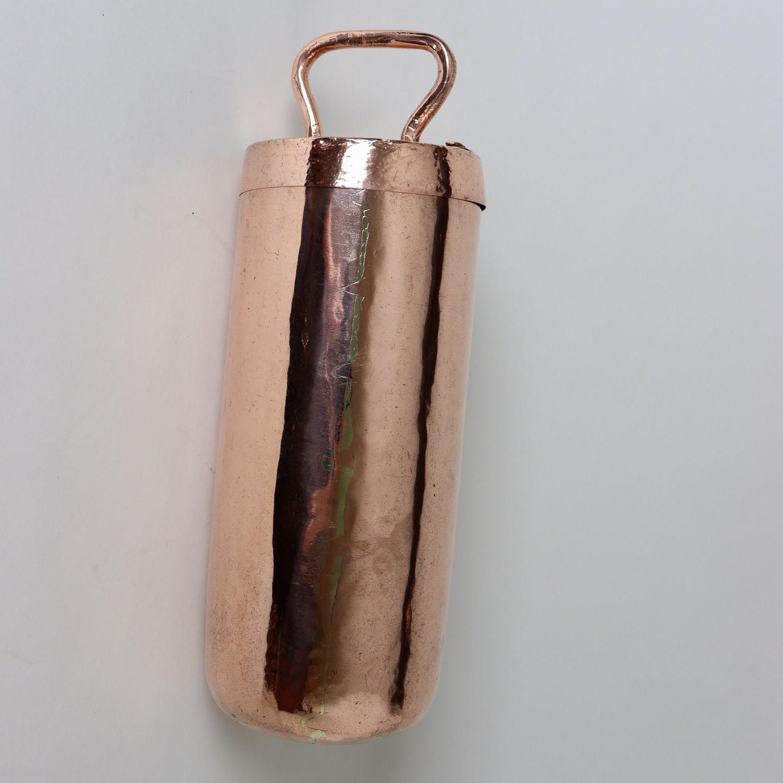 A rare, 19th century, French copper sorbetiere for making ice cream. Sorbetieres were usually made from pewter and it is very unusual to find one made from copper. This is only the second example that we have had. It is made from a heavy gauge of copper, has castellated seams around the base and up the side, and it dates from c.1850. There is slight pitting to the copper, from use, where it has been in contact with ice. Otherwise it is in good condition. The tinning to the interior is quite dark but the sorbetiere could still be used.