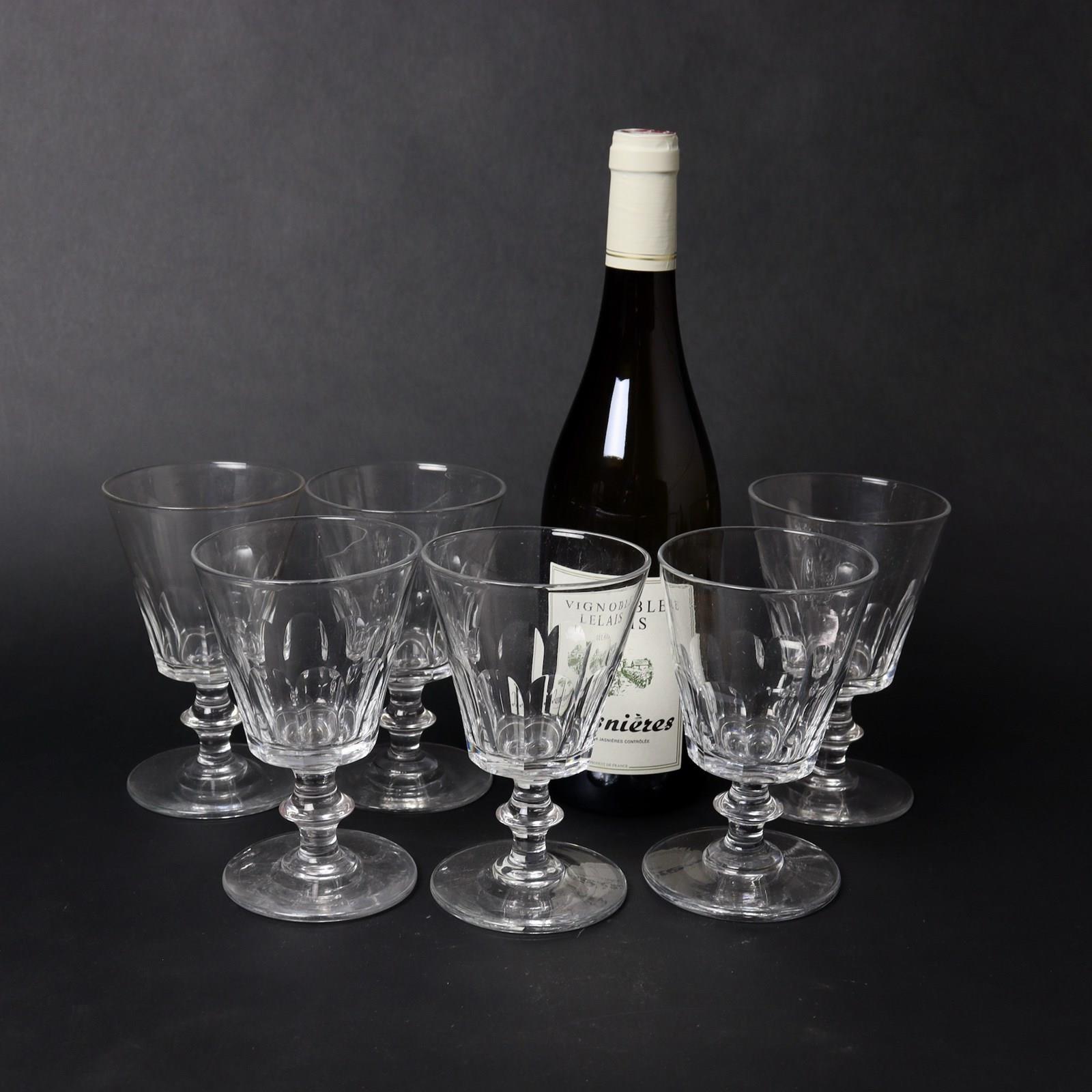 Set Of 6 French Crystal Wine Glasses