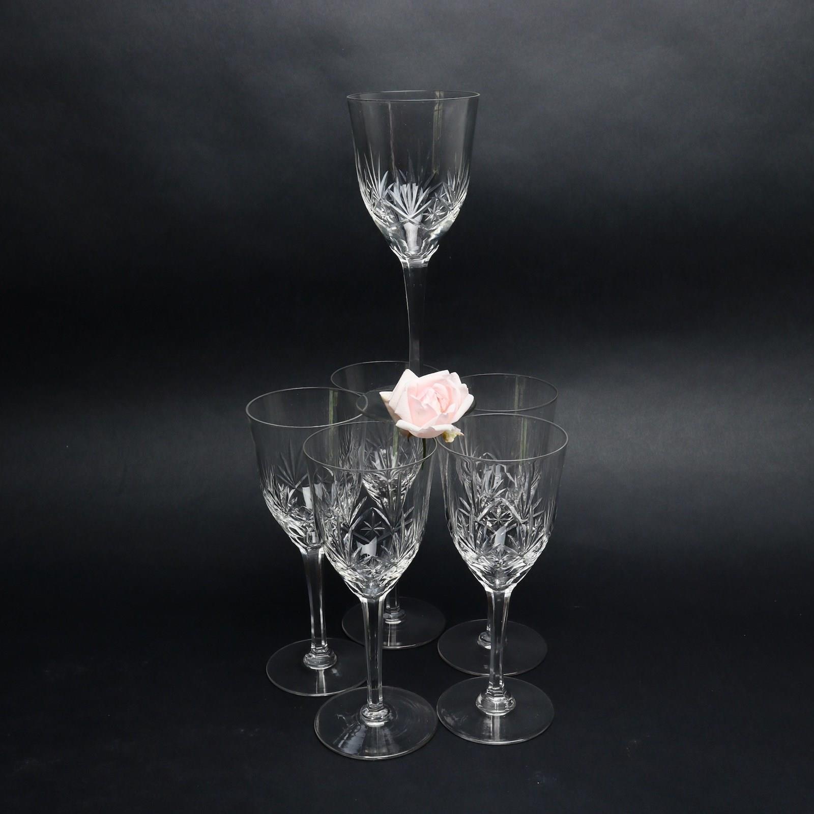 Set Of 6 Large, French Crystal Wine Or Water Glasses