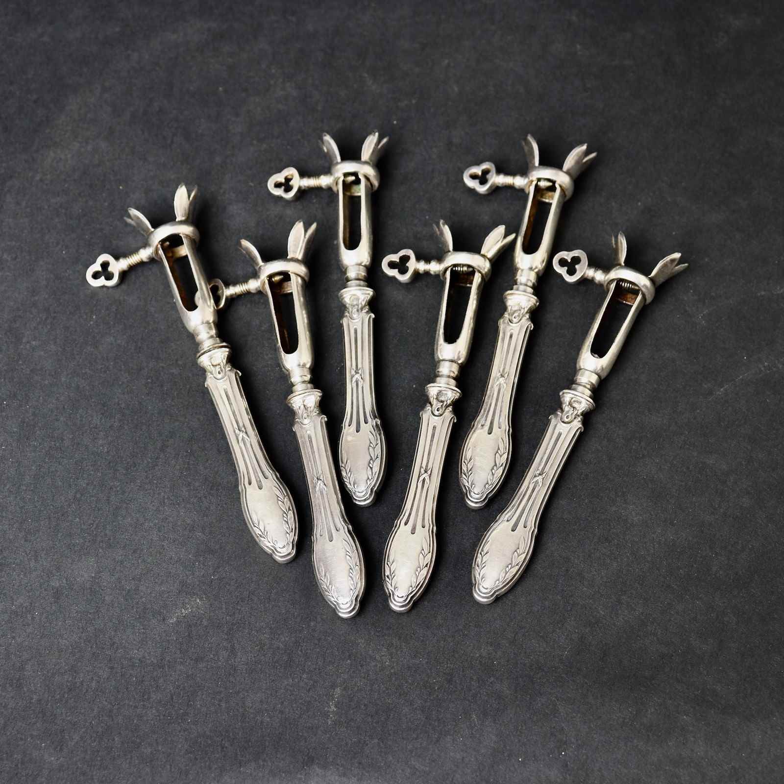 Set Of Small, French Silver Bone Clamps