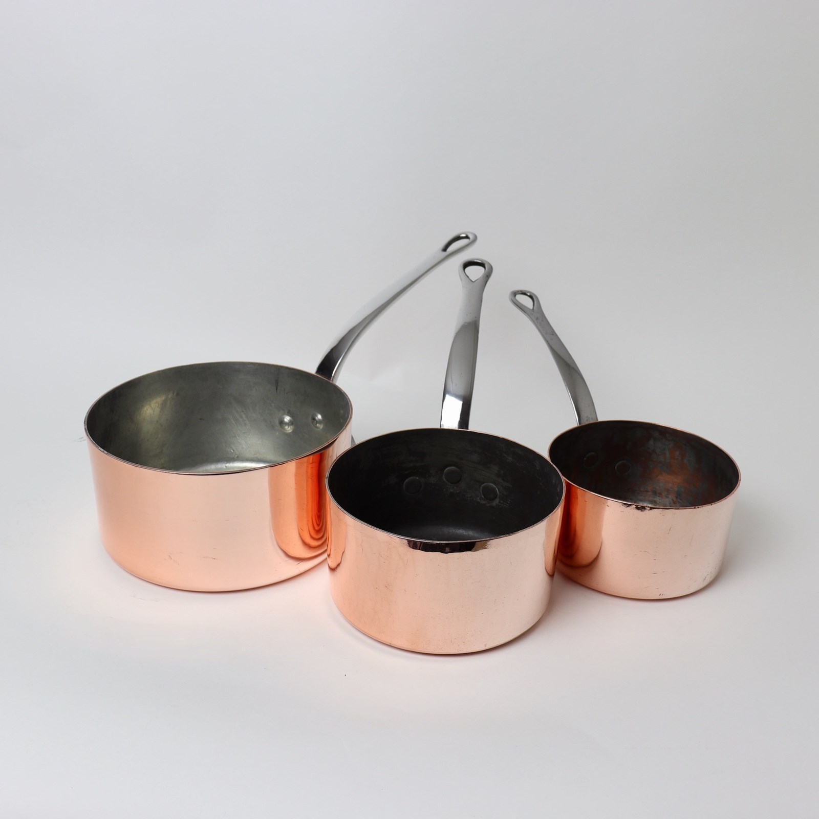 Set Of Three French Copper Saucepans