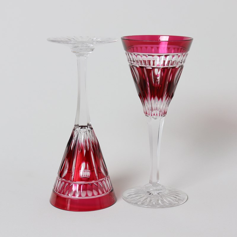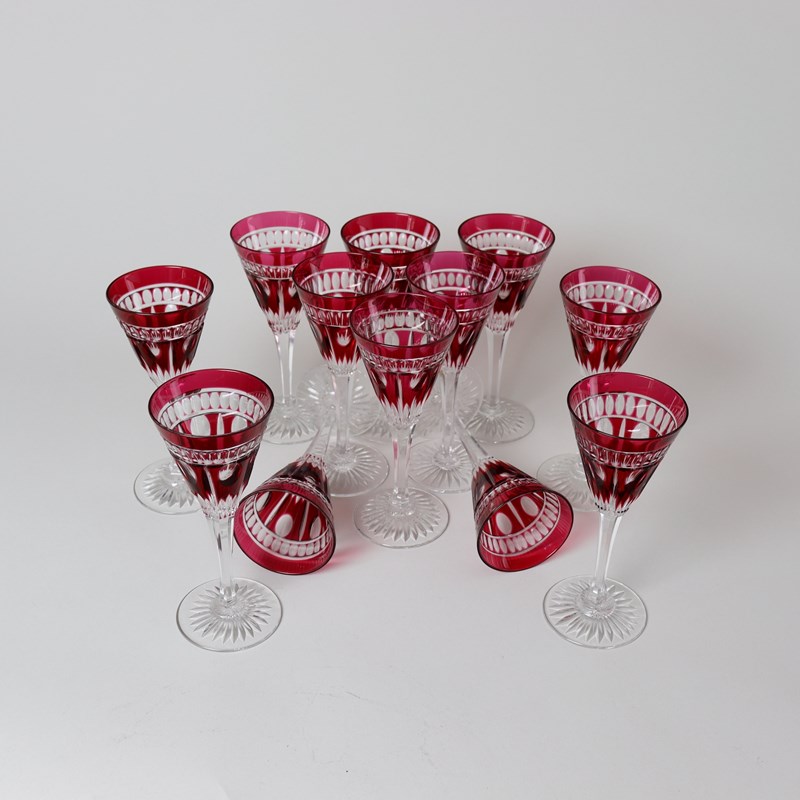 Set Of Twelve Ruby Overlay, Crystal Glasses