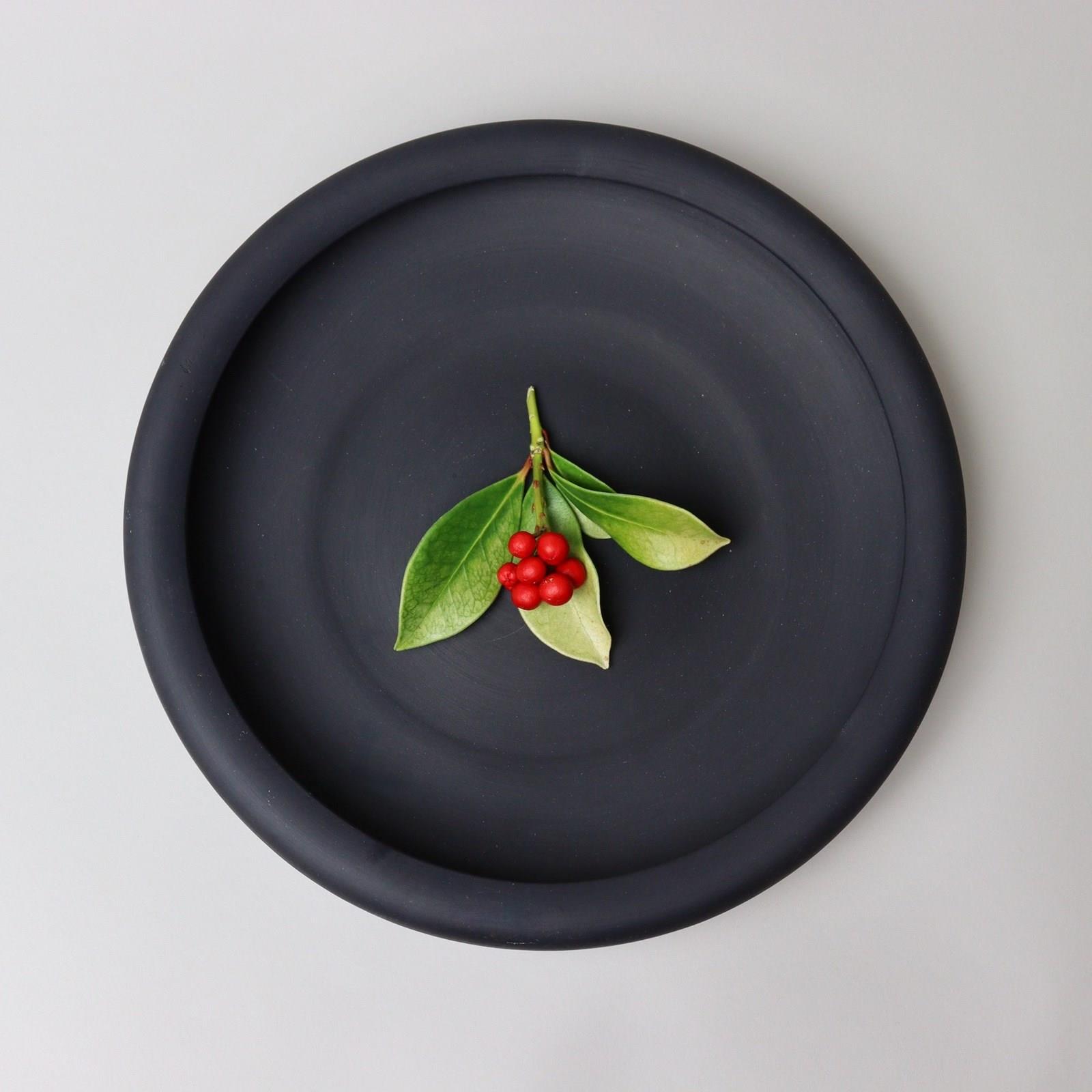 A shallow, Wedgwood black basalt bowl with an inverted rim. This is marked ”WEDGWOOD MADE IN ENGLAND” and it dates from c.1920. It is plain in form, smoothly potted and in excellent condition.