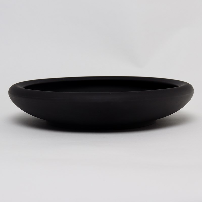 A shallow, Wedgwood black basalt bowl. This is marked “WEDGWOOD MADE IN ENGLAND” and it dates from c.1920. It is also impressed with a number “10” which relates to the diameter in inches. The basalt is smooth and well potted and the simple shaped bowl is perfectly plain. It is in excellent condition.