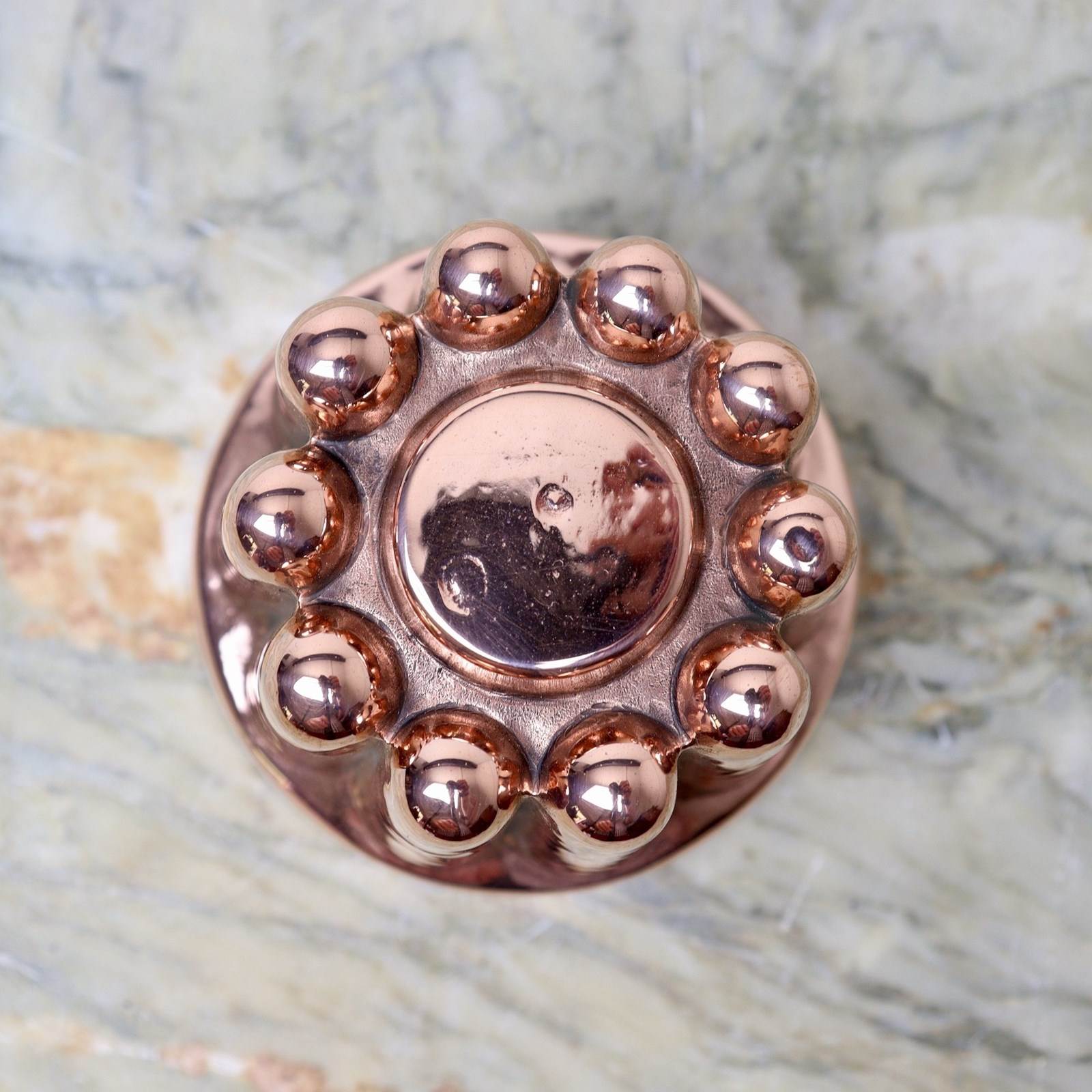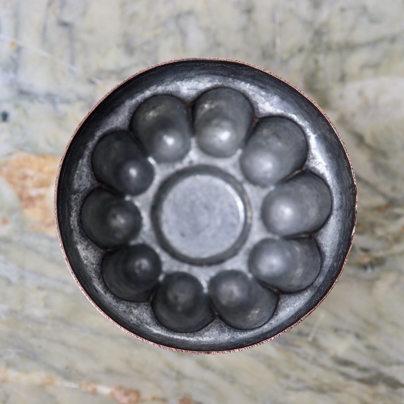 A small, 19th century, copper mould. This is English and it dates from c.1880. It is well made, from a heavy gauge of copper, and has a flat top above ten dome topped, plain fluted sides. It is in very good condition and the tinning, to the interior, is still in very good, usable condition.