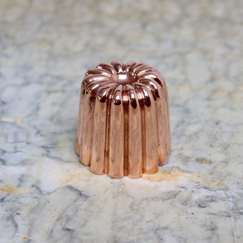 A very small, reeded copper dariole mould with a sunken top. This is English, it is made from a substantial gauge of copper and it dates from c.1880. It is in very good condition but the tinning, to the interior, is worn.
