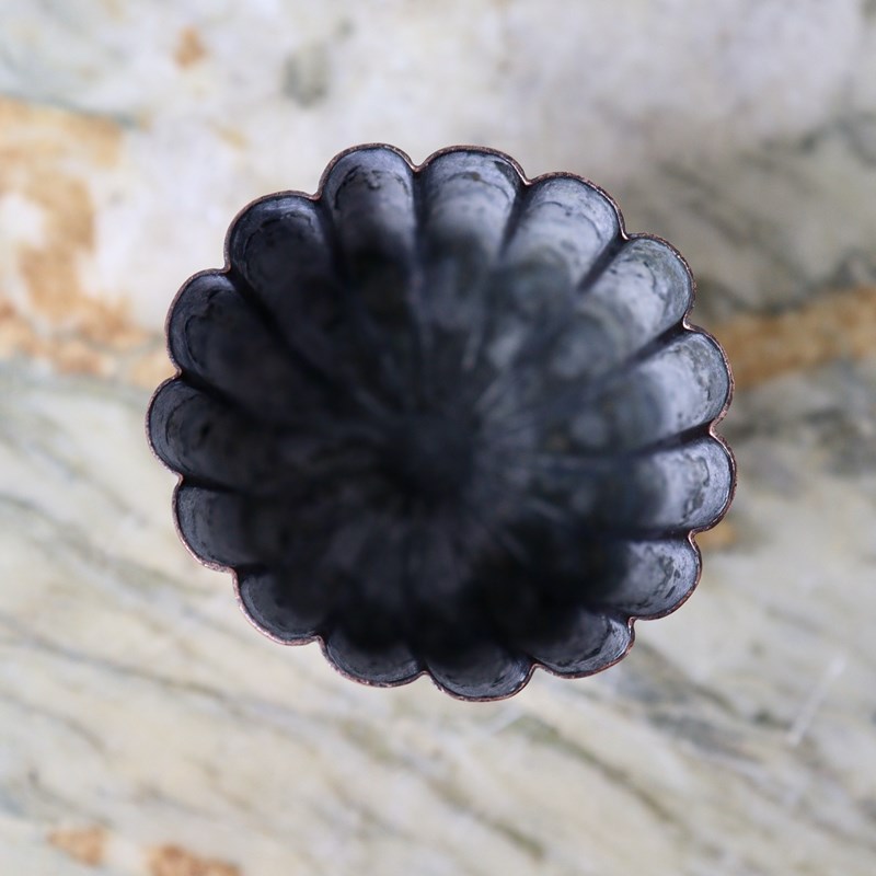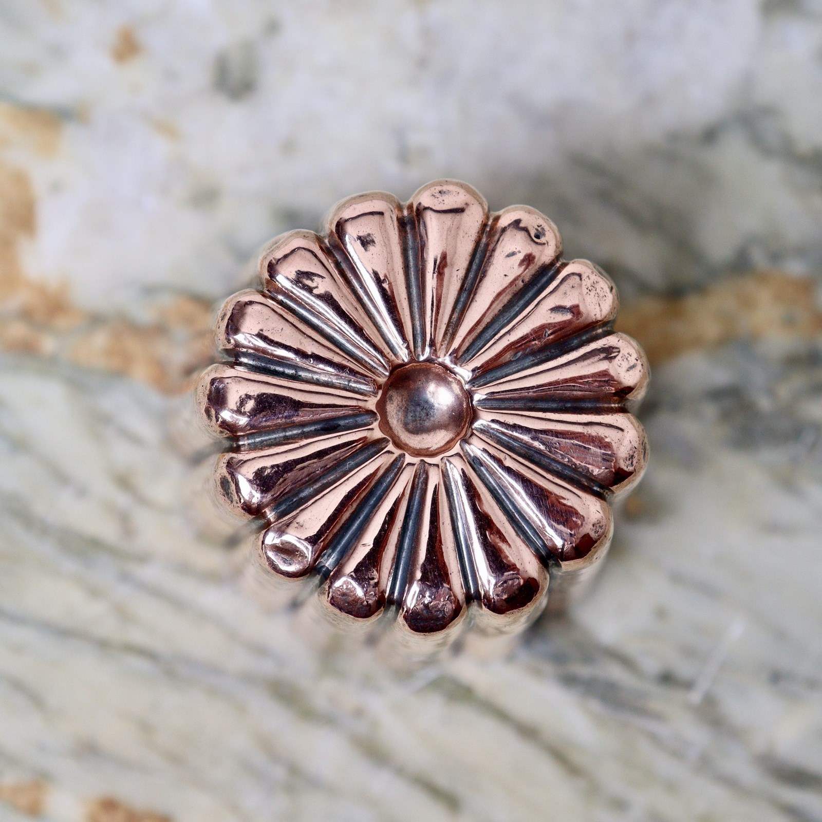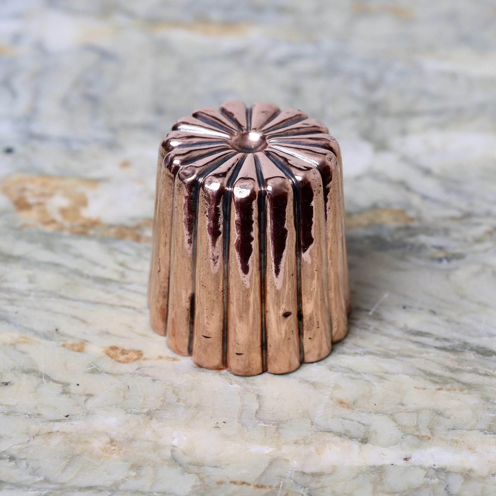 A small, fluted copper dariole mould. This is English and it dates from c.1890. It is well made, from a substantial gauge of copper, and has a fluted top and sides.There is very slight denting to the top but otherwise it is in good condition. The tinning, to the interior, is worn.