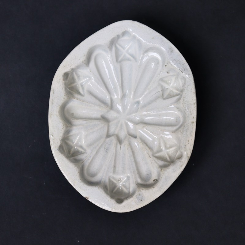A small, 19th century, earthenware mould modelled with a geometric design. This has no manufacturers marks but it is impressed with a number ”2’, made by Minton and dates from c.1840. The design is very crisp and would turn out well. It is in excellent condition.