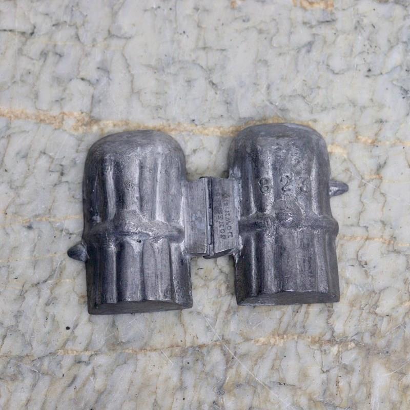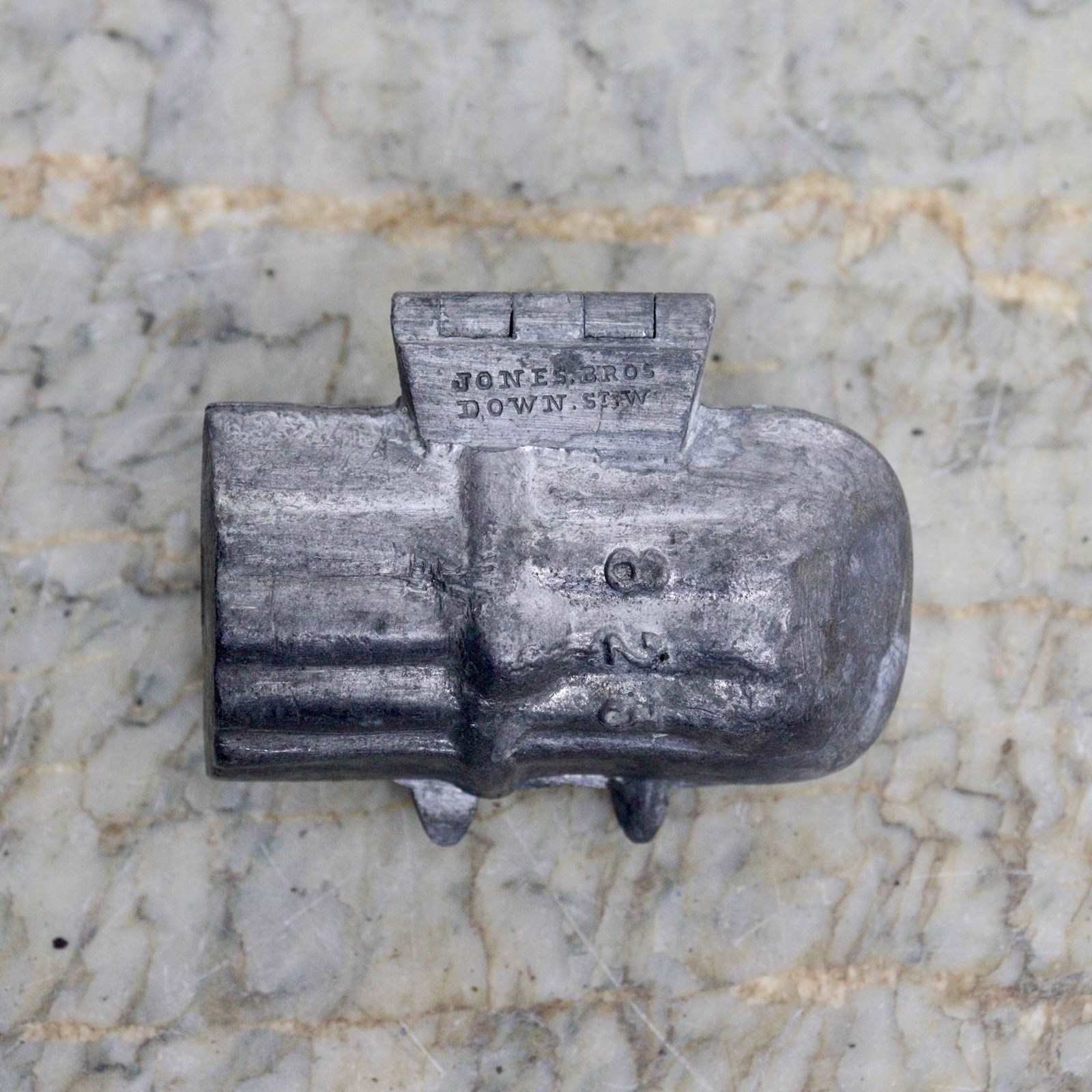 A small pewter ice cream mould in the shape of a bunch of asparagus. This is marked, in the casting, “JONES BROS. DOWN ST. W.” and it also has the pattern number “823”. It dates from c.1880. It is very well detailed to the interior and would turn out very well. It is in good condition. The exterior has quite a dark patina and the interior, although slightly dull, is still in usable condition.