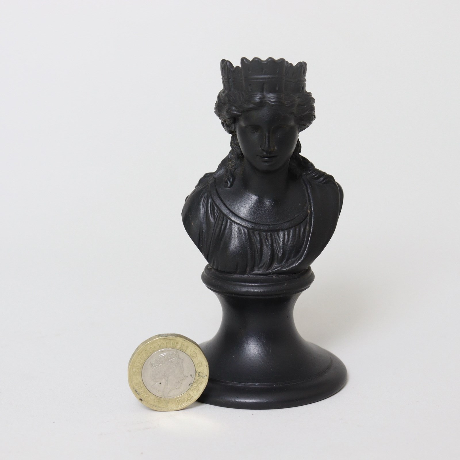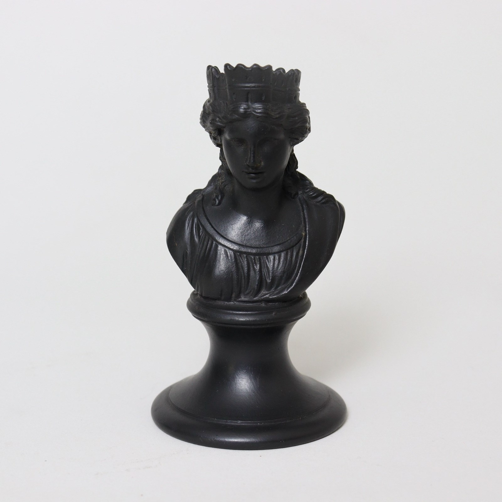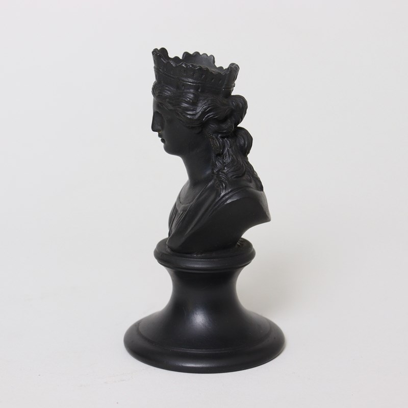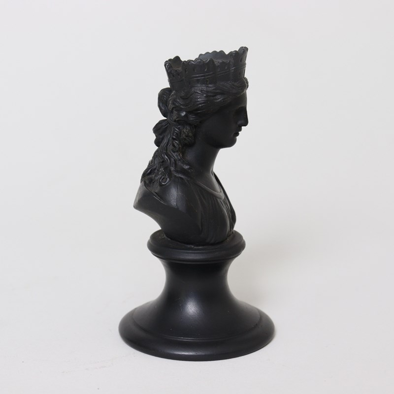 A miniature, Wedgwood, black basalt bust of a queen. This is marked ”WEDGWOOD MADE IN ENGLAND” and it dates from c.1920. I am not sure who the bust represents as I cannot find any reference to her. The bust is well modelled, with good detail, and it is in excellent condition.