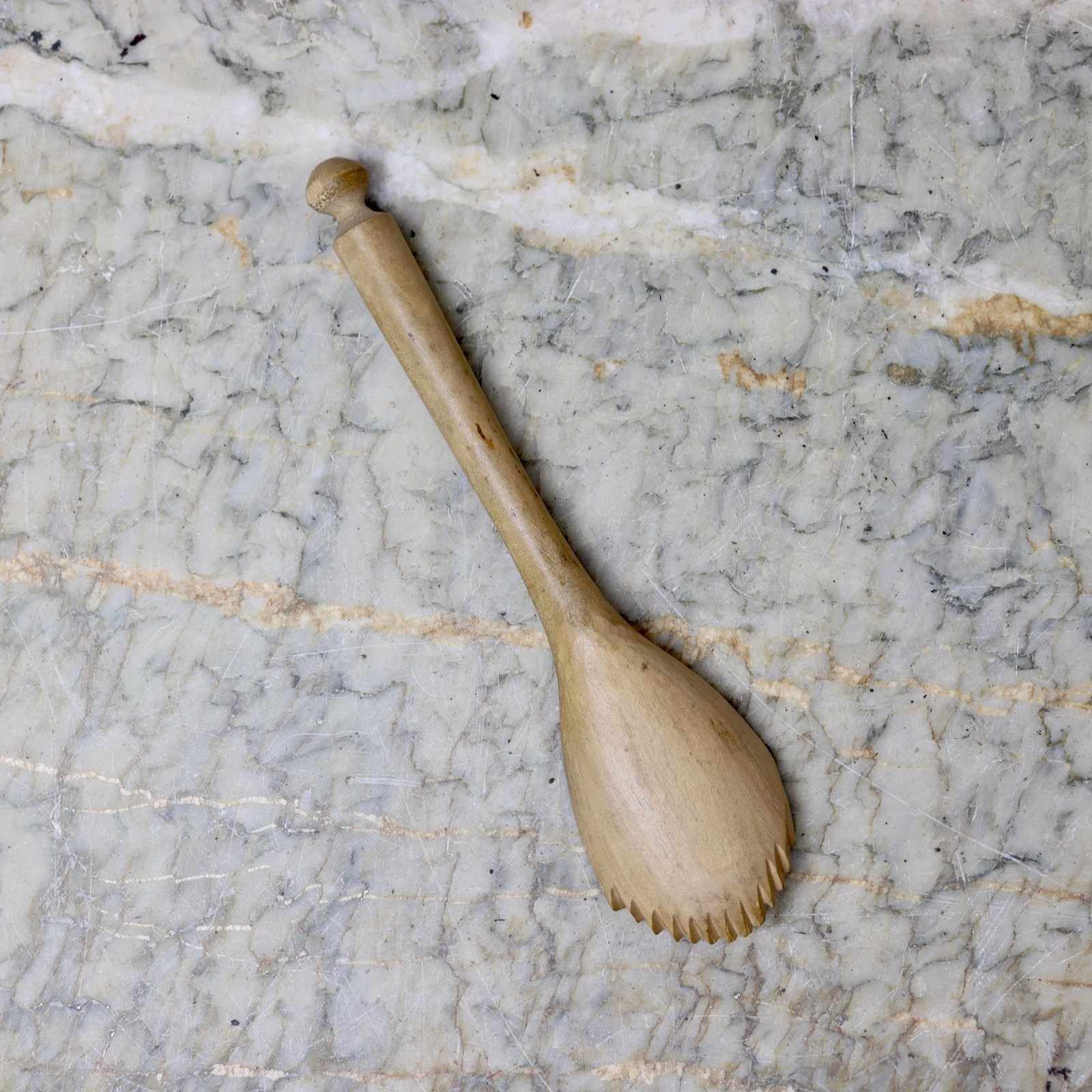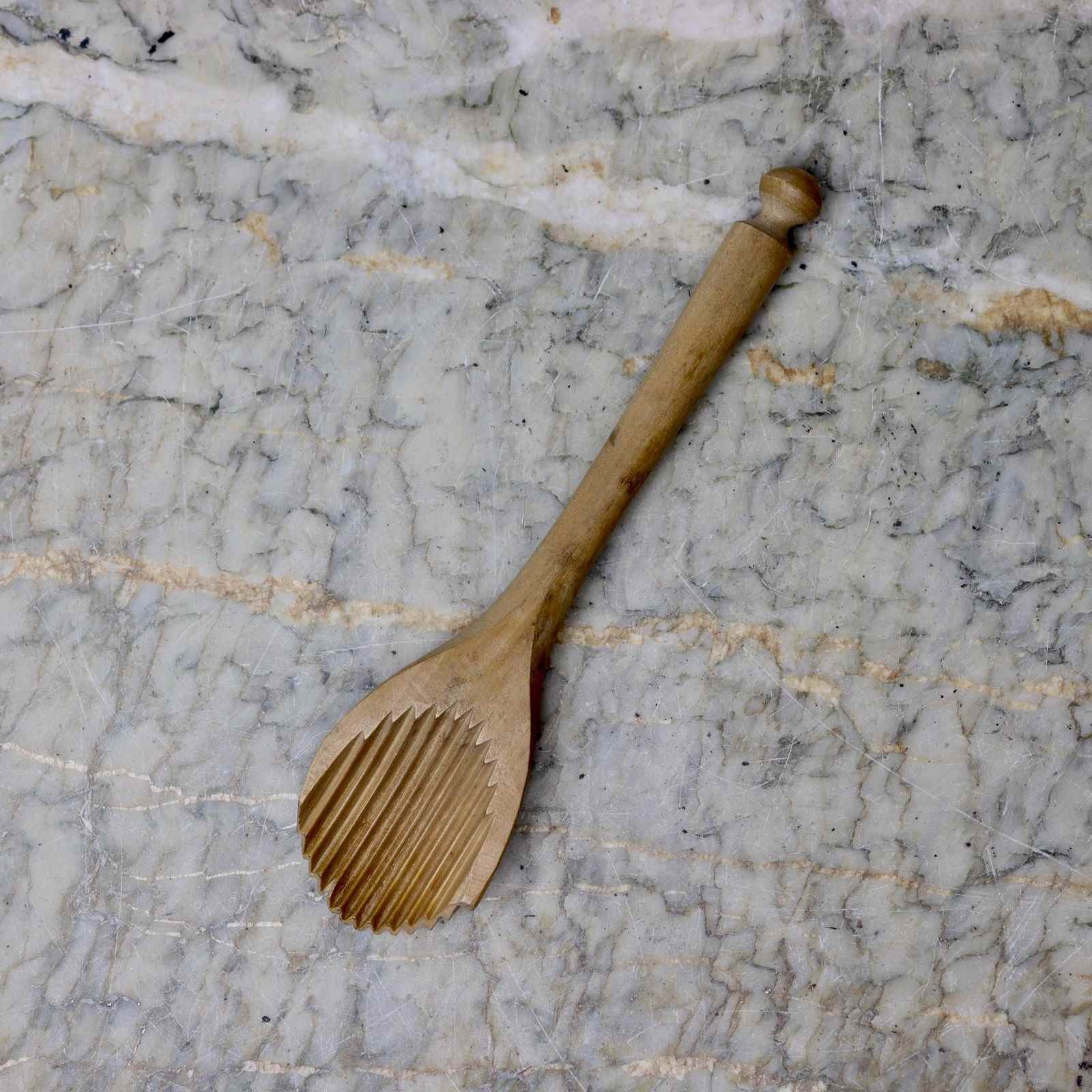 A carved, sycamore butter curler. This is English and dates from c.1900.It is in excellent condition.