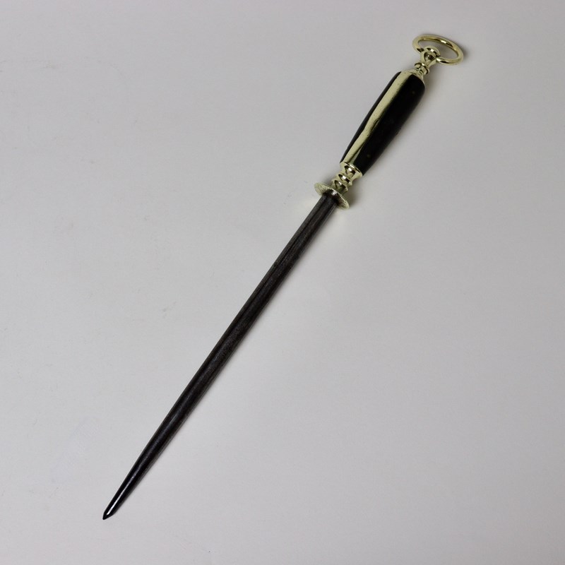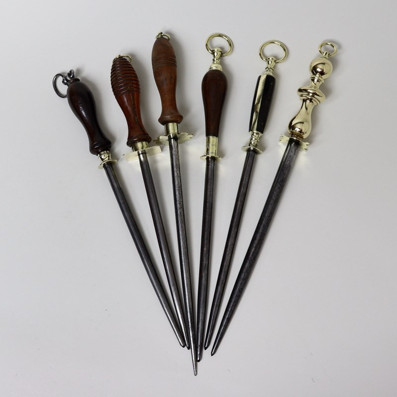 A nineteenth century knife sharpening steel. This is stamped, on the steel, “TAYLOR SHEFFIELD”. It has an attractive handle, which combines brass and a dark wood, and it dates from c.1880. It is in excellent condition.