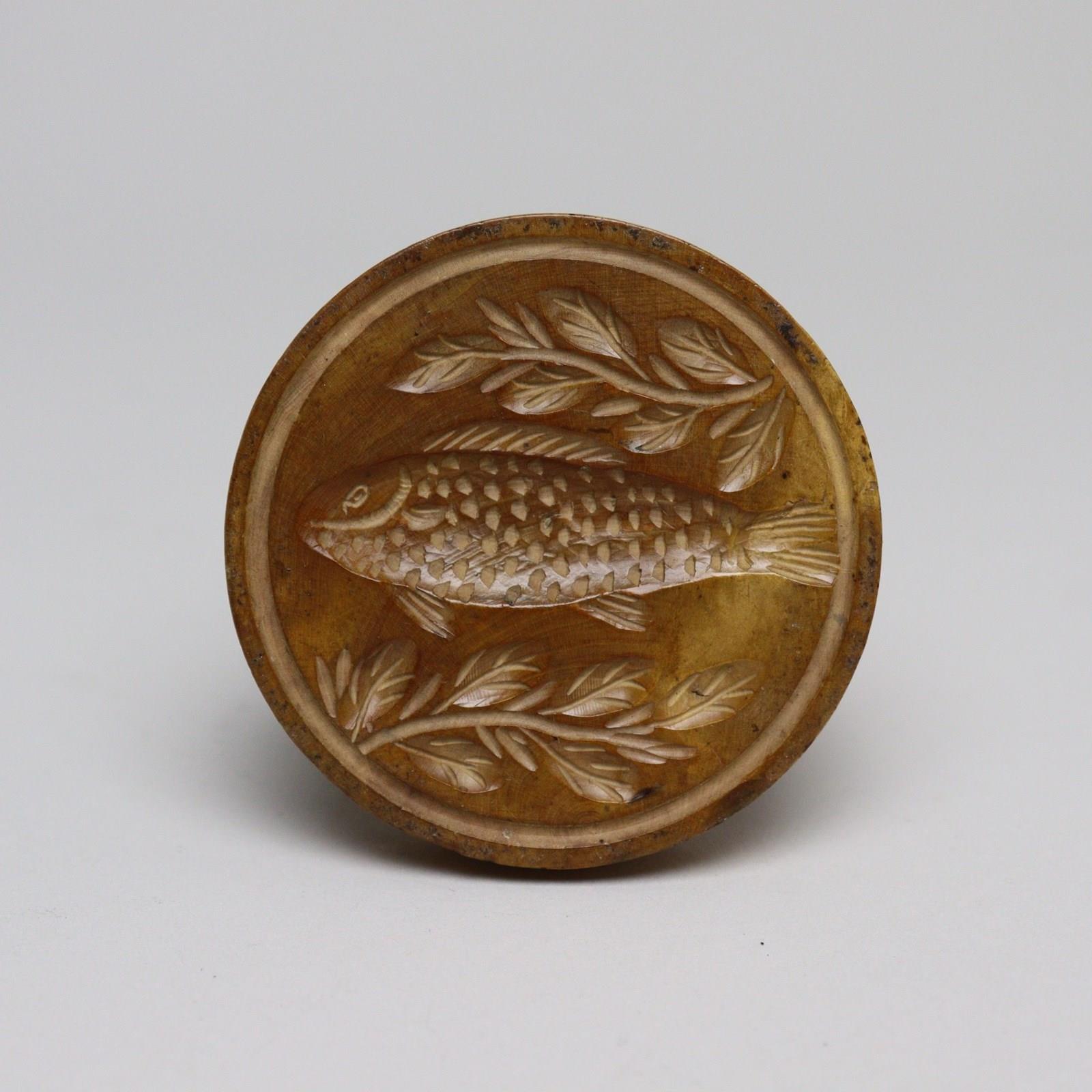 A super quality, boxwood butter print carved with a fish. This is French and it dates from c.1820. It is a most unusual design to find on a butter print and one that we have not come across before. The carving has very good detail and depth and the piece is in excellent condition.