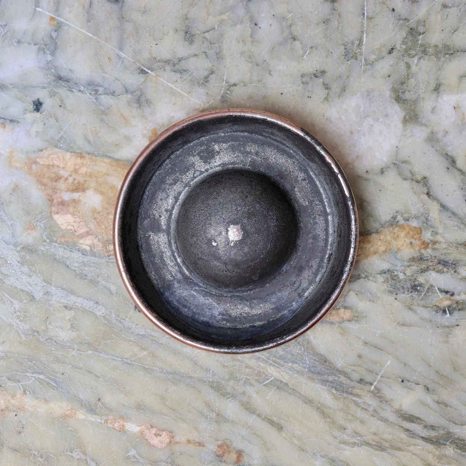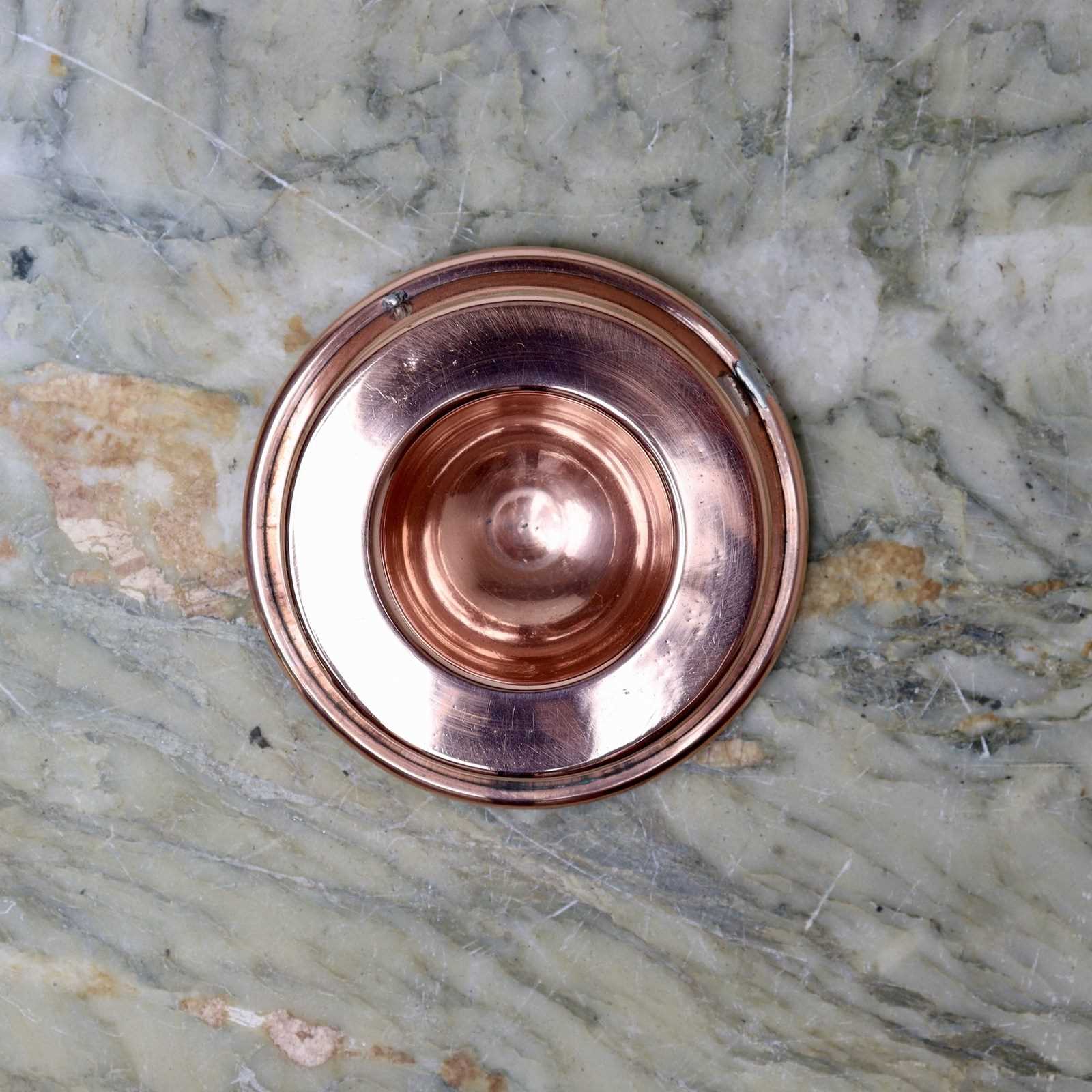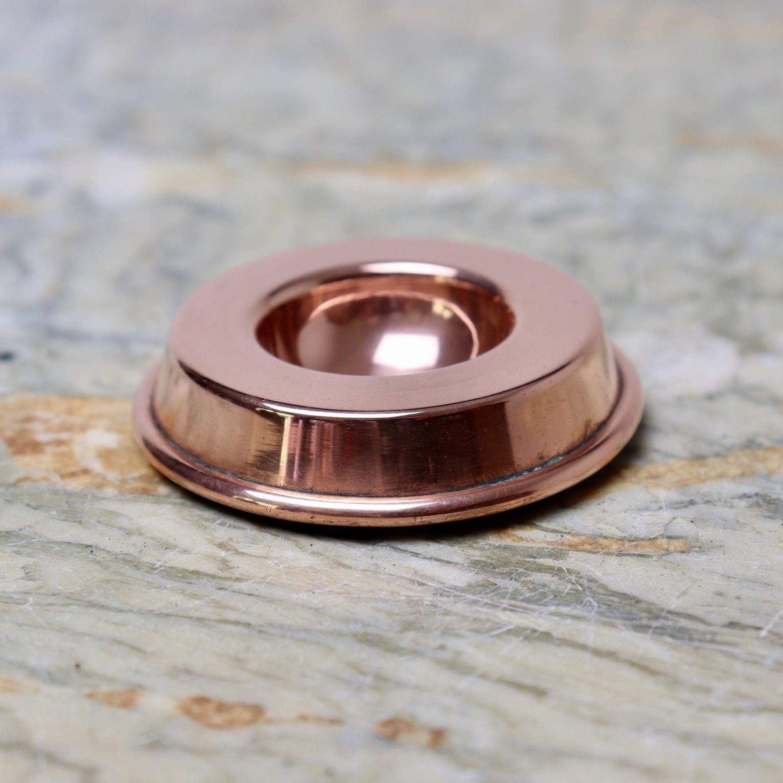 An unusual, miniature copper ring mould with a sunken top. This is made from a substantial gauge of copper, it is English and it dates from c.1880. It is in excellent condition and, although the tinning is slightly dark, it is still usable.