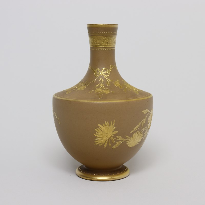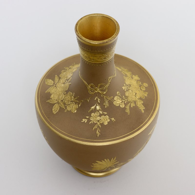 Unusual Wedgwood Stoneware Vase With Raised Gilt Decoration