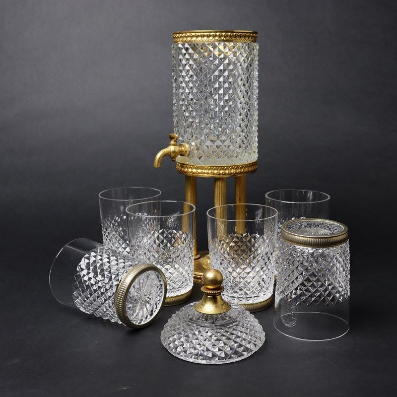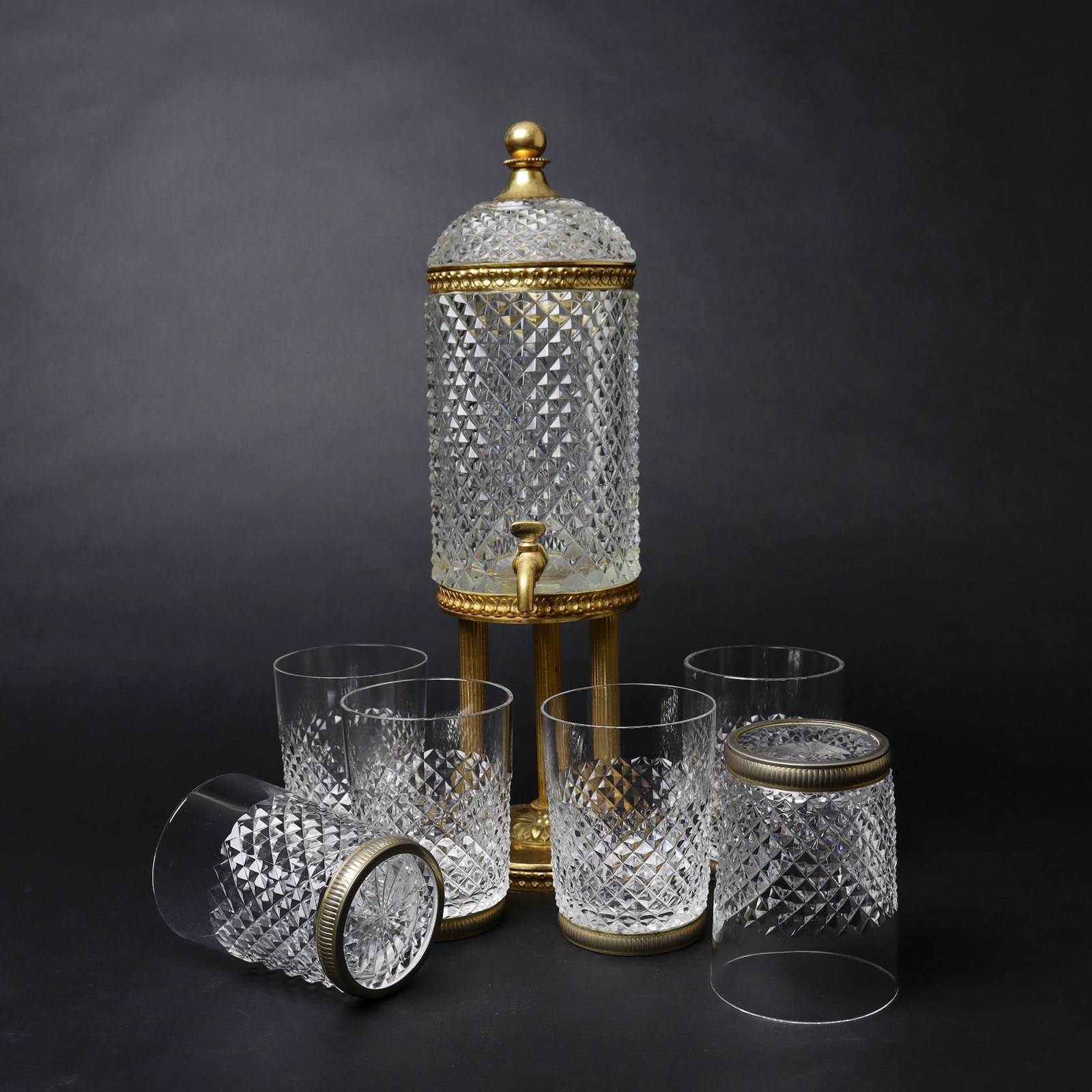 Val St. Lambert Crystal Tumblers & Drink Dispenser