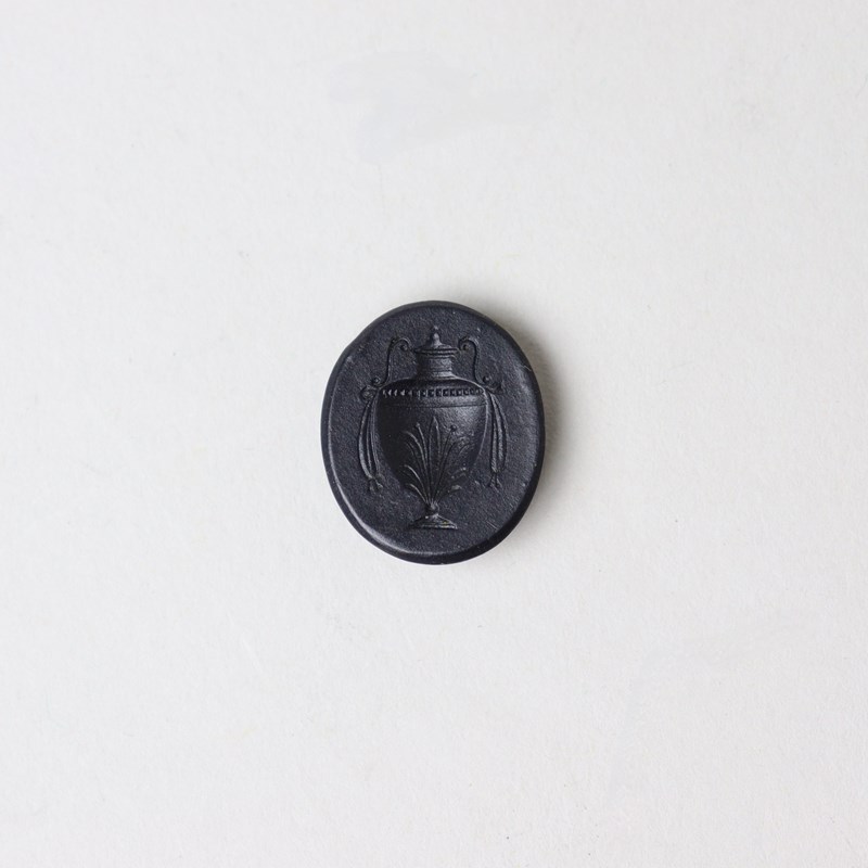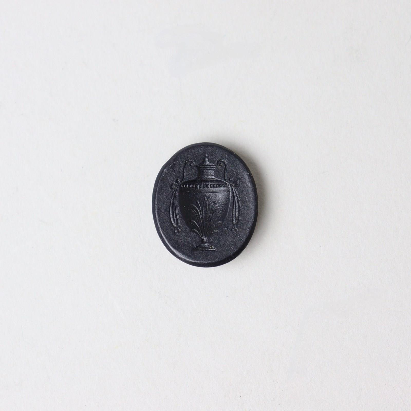 Wedgwood and Bentley, black basalt intaglio impressed with an Adam’s style urn. Marked “Wedgwood & Bentley” with a catalogue number “76”. Date c.1775. Perfect condition.