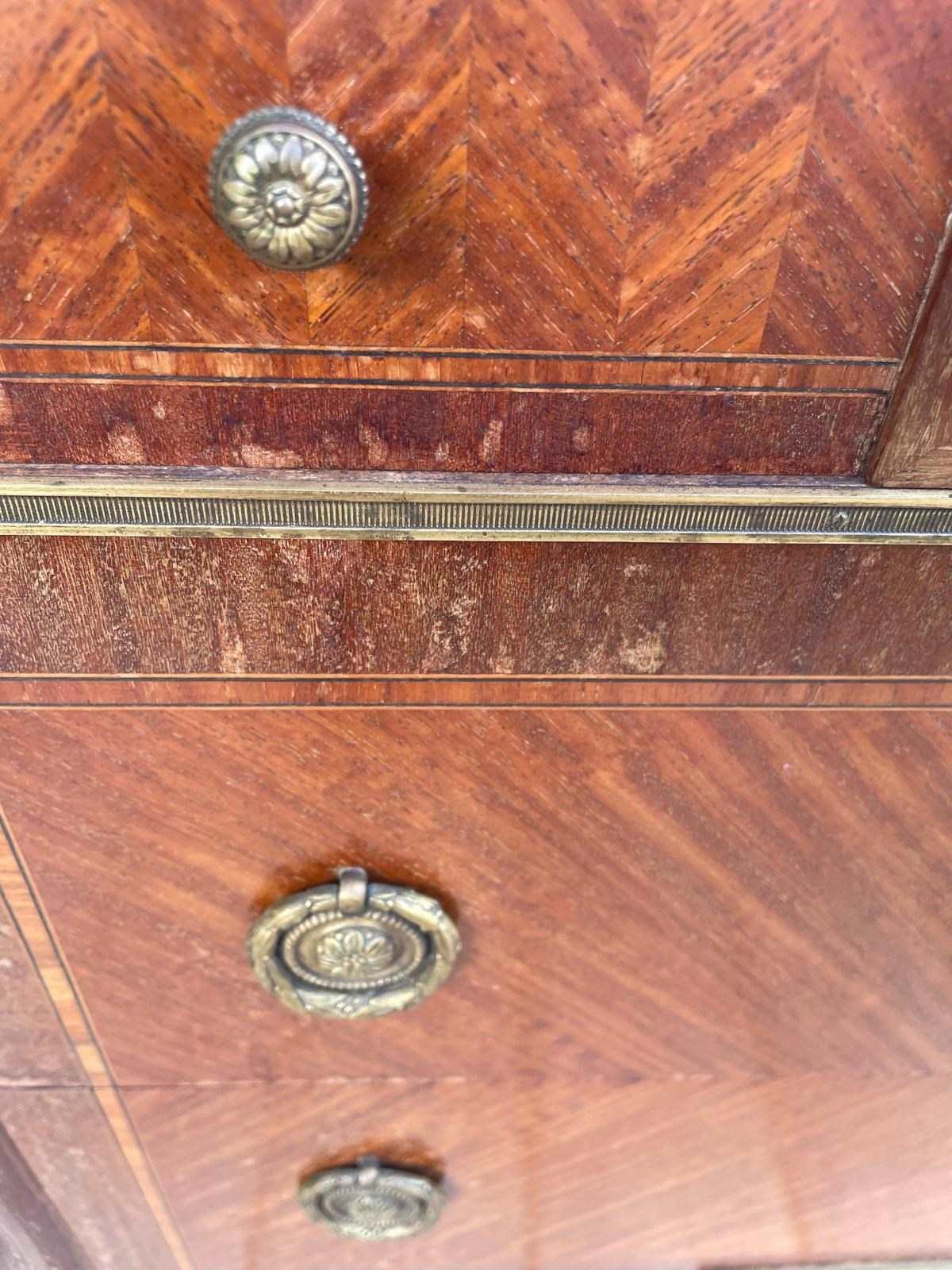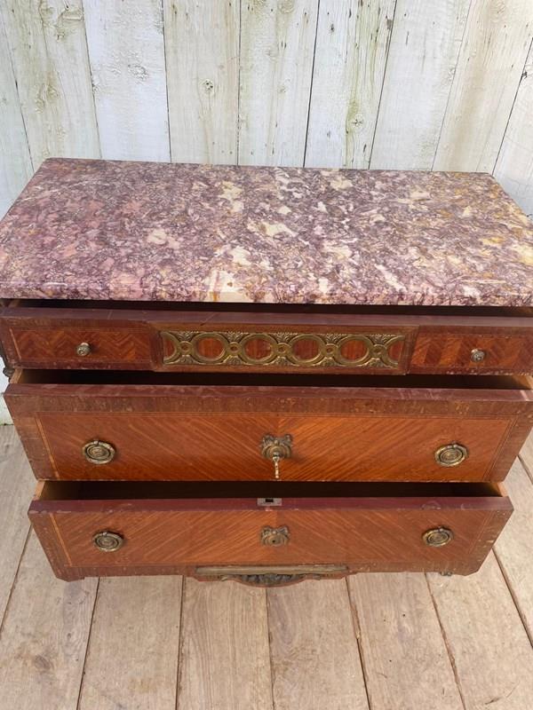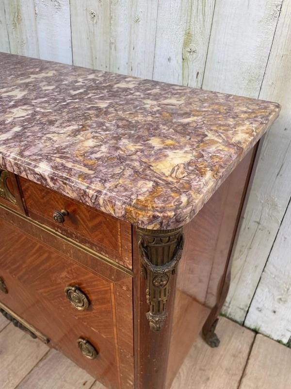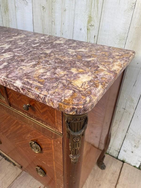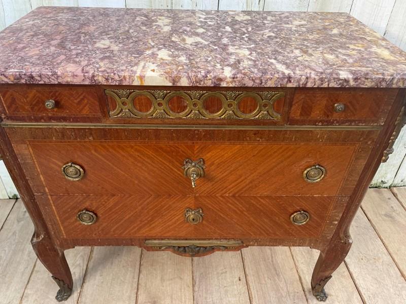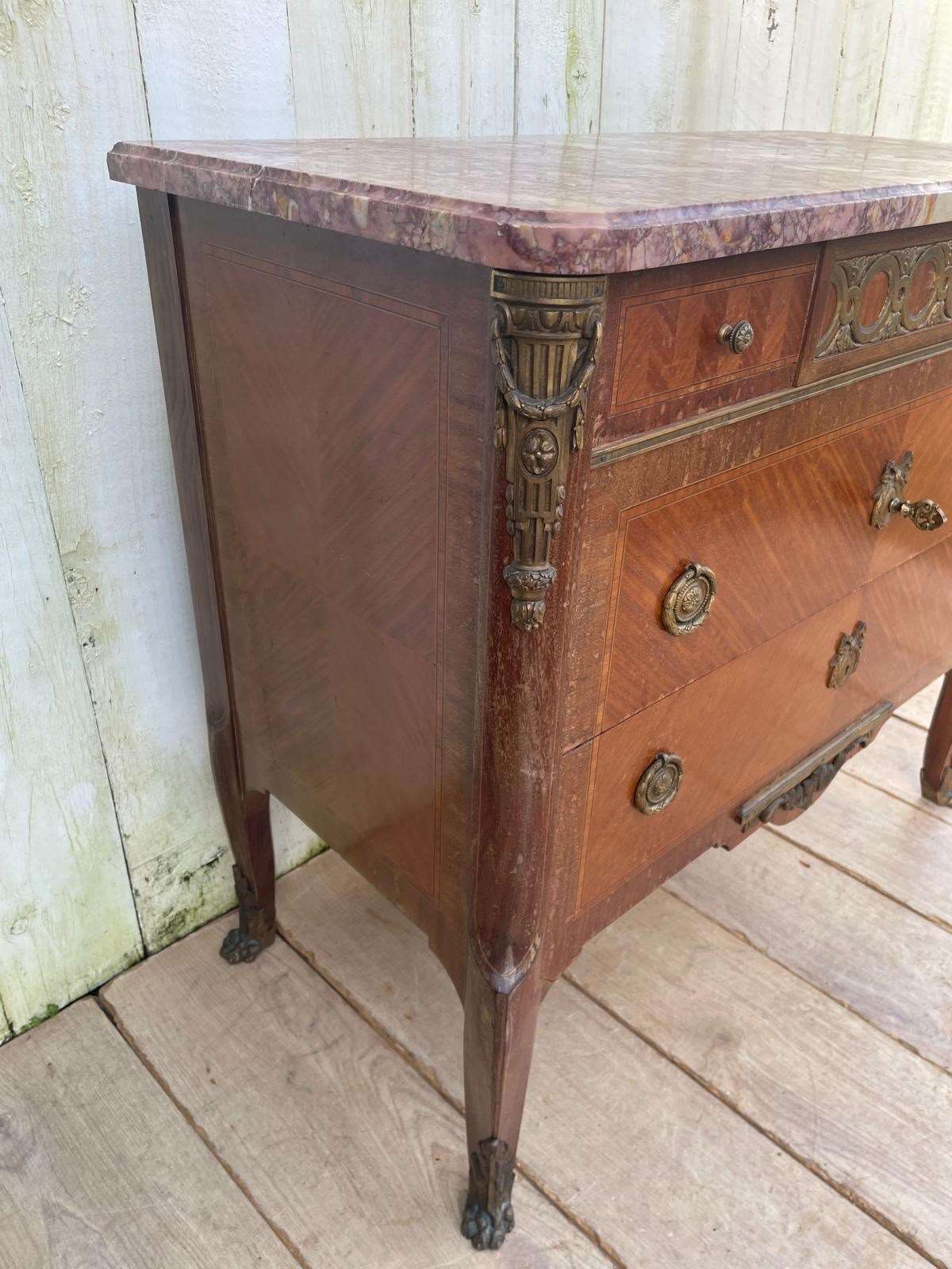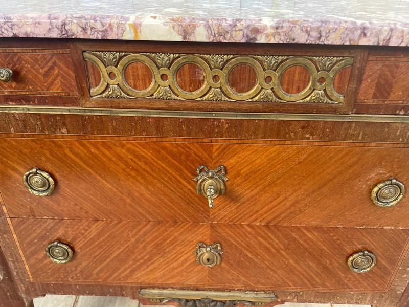 It features a distinctive marble top with ornate brass mounts and handles.