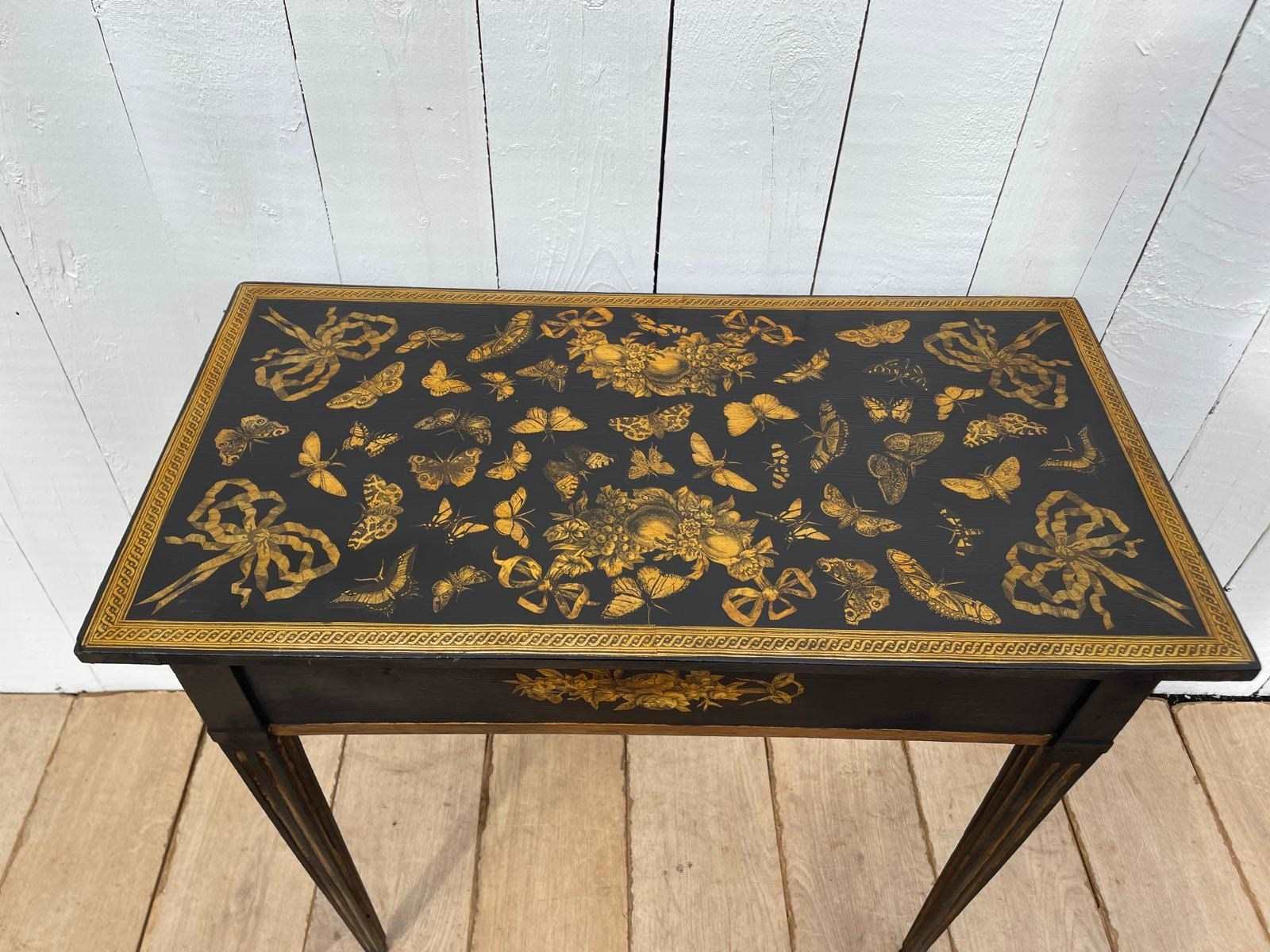 Decorated with butterflies and swags and a smart border, in the form of decoupage.