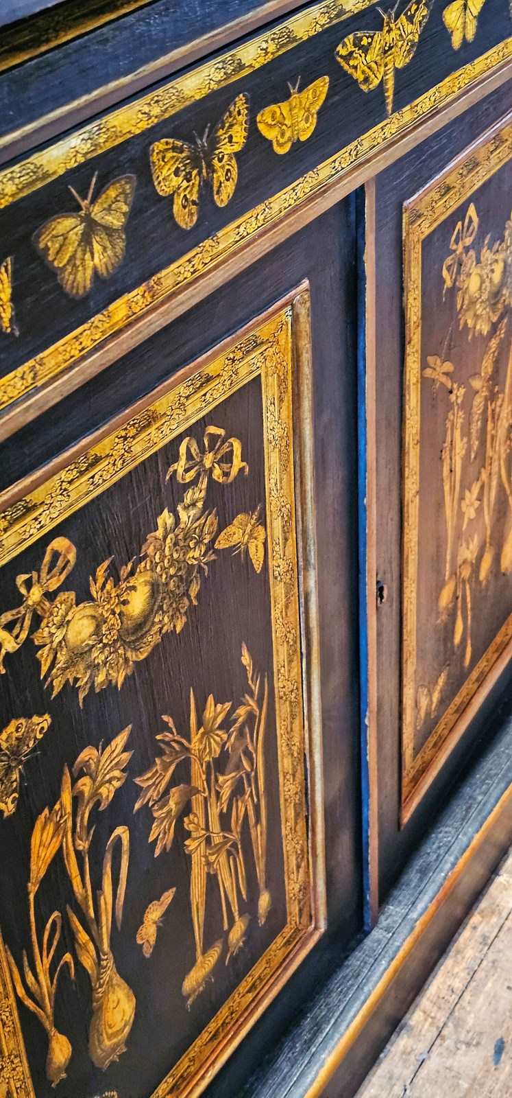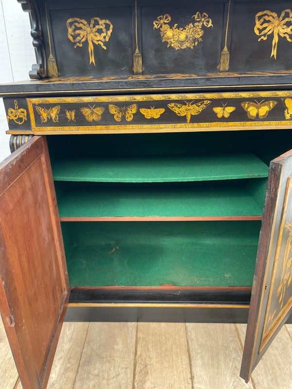 Both the drawer interior and inside cupboard surfaces are covered in green felt, which is clean.