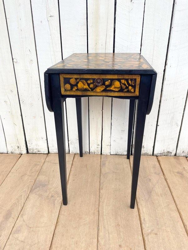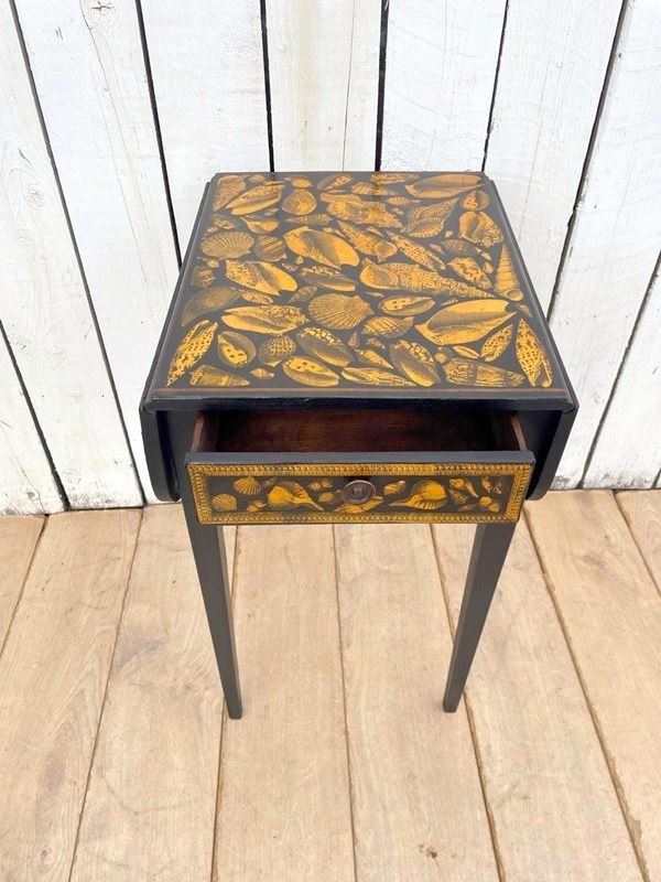 Later painted and decorated with shell decoupage using 19th century images.