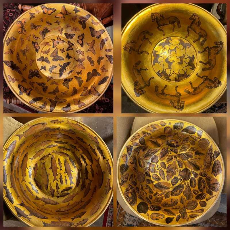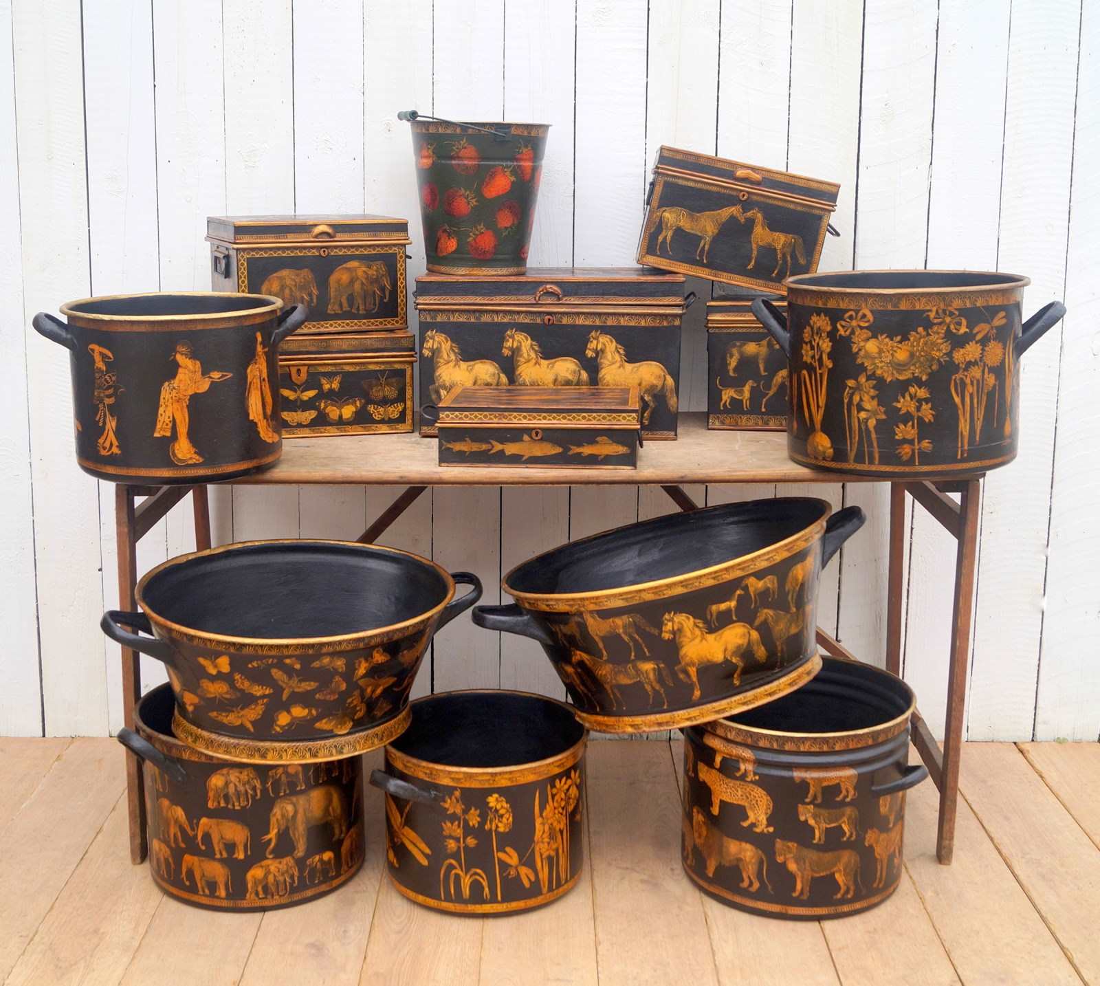 We also take vintage enamel pots and buckets, paint then decorate with decoupage.