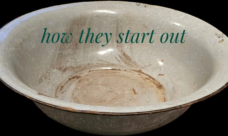We take vintage enamel wash bowls and old pots and buckets and give them a new lease of life.
