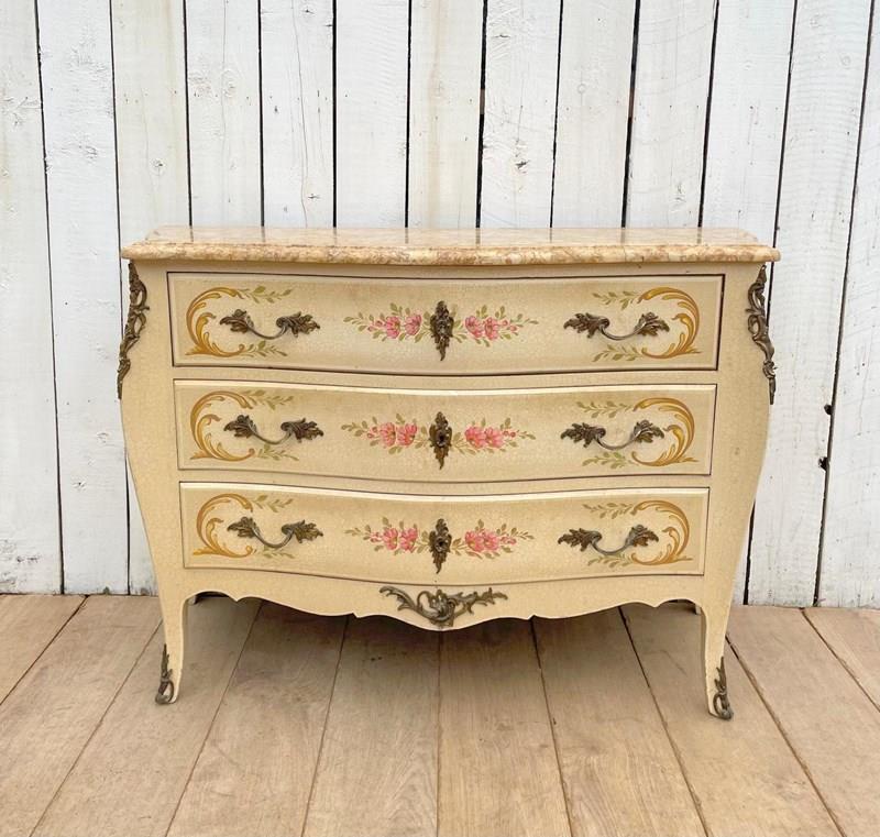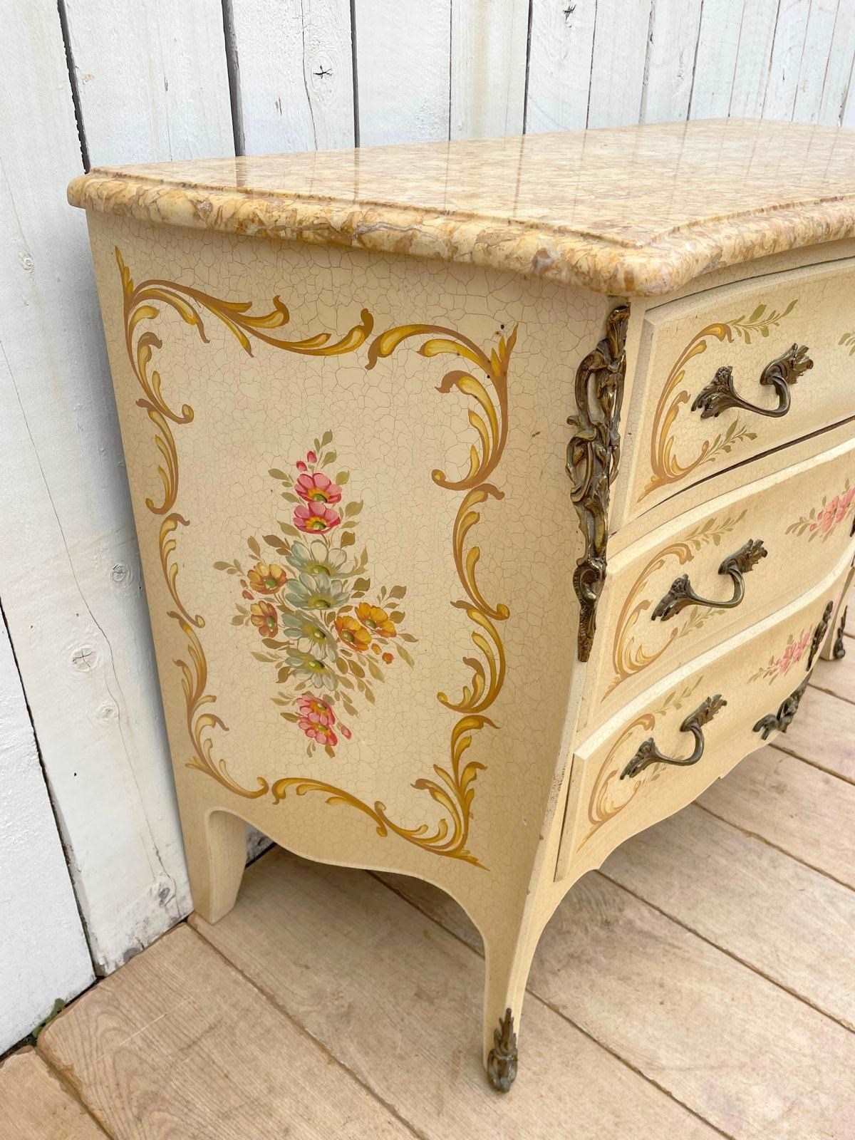 With its bombe shape, delicate flower and crackle detail it would enhance any bedroom, hallway or lounge.