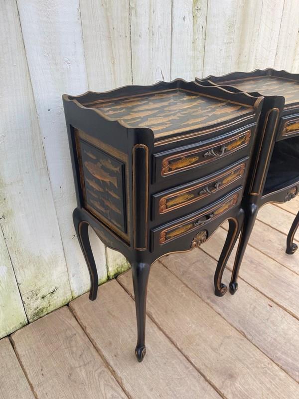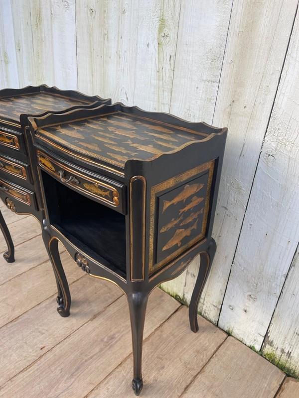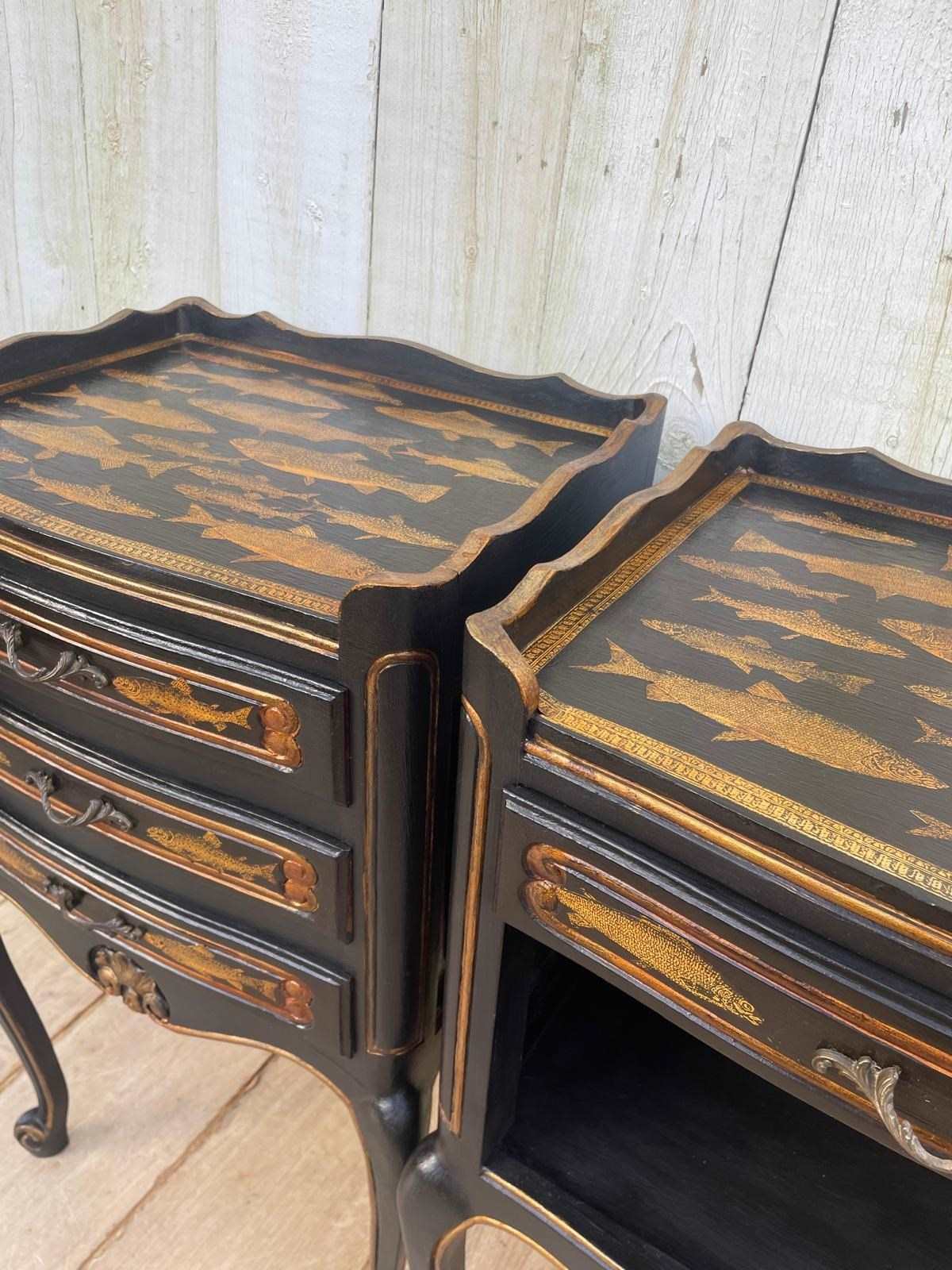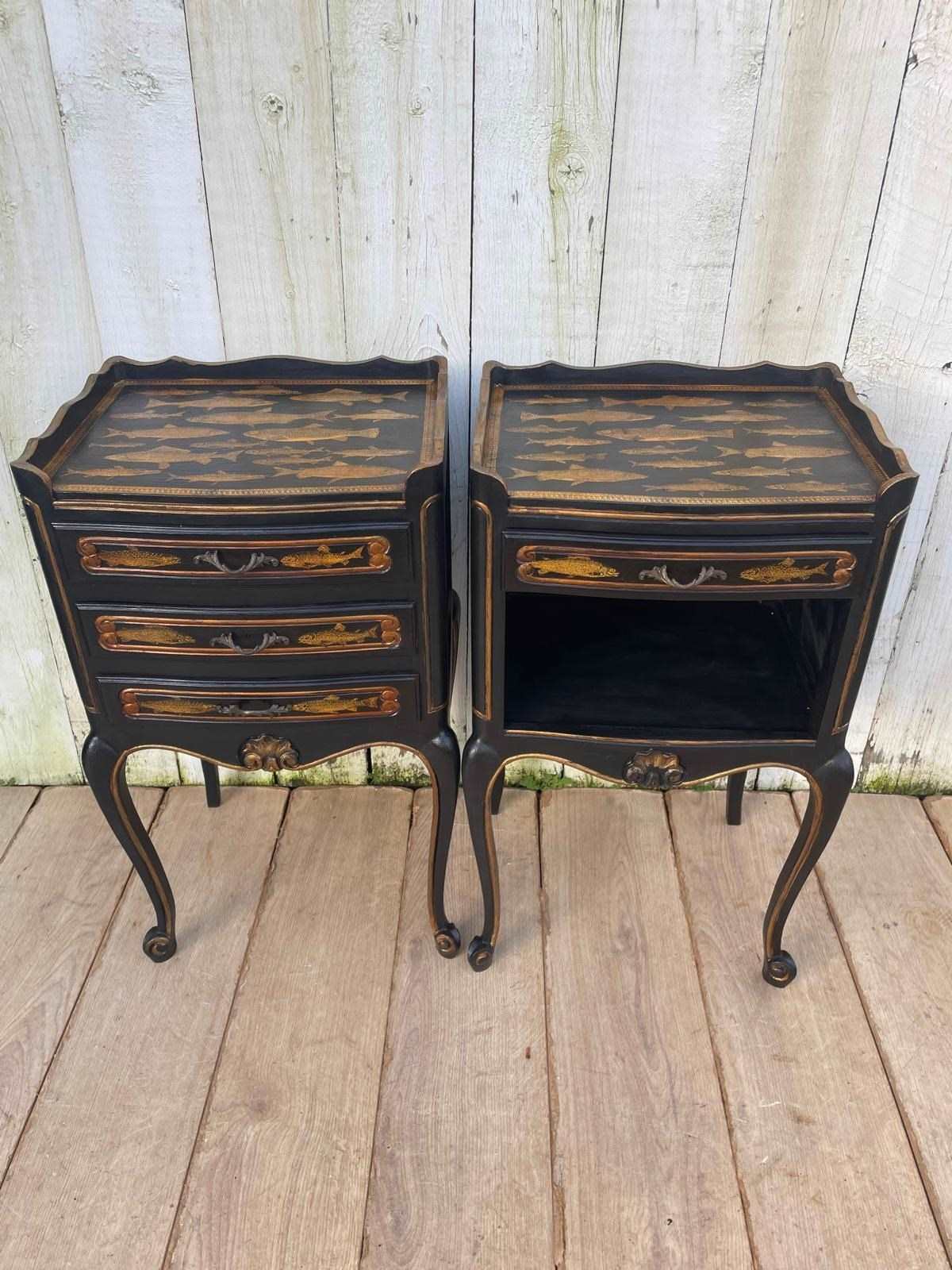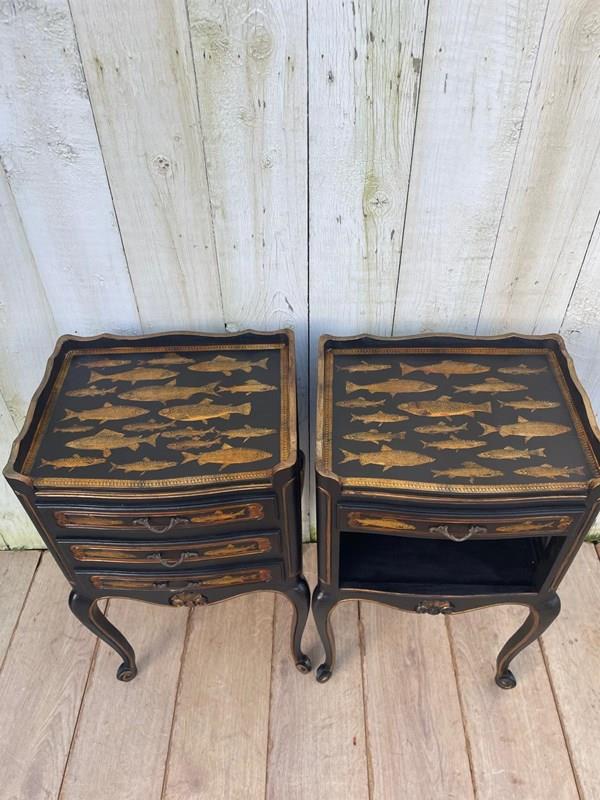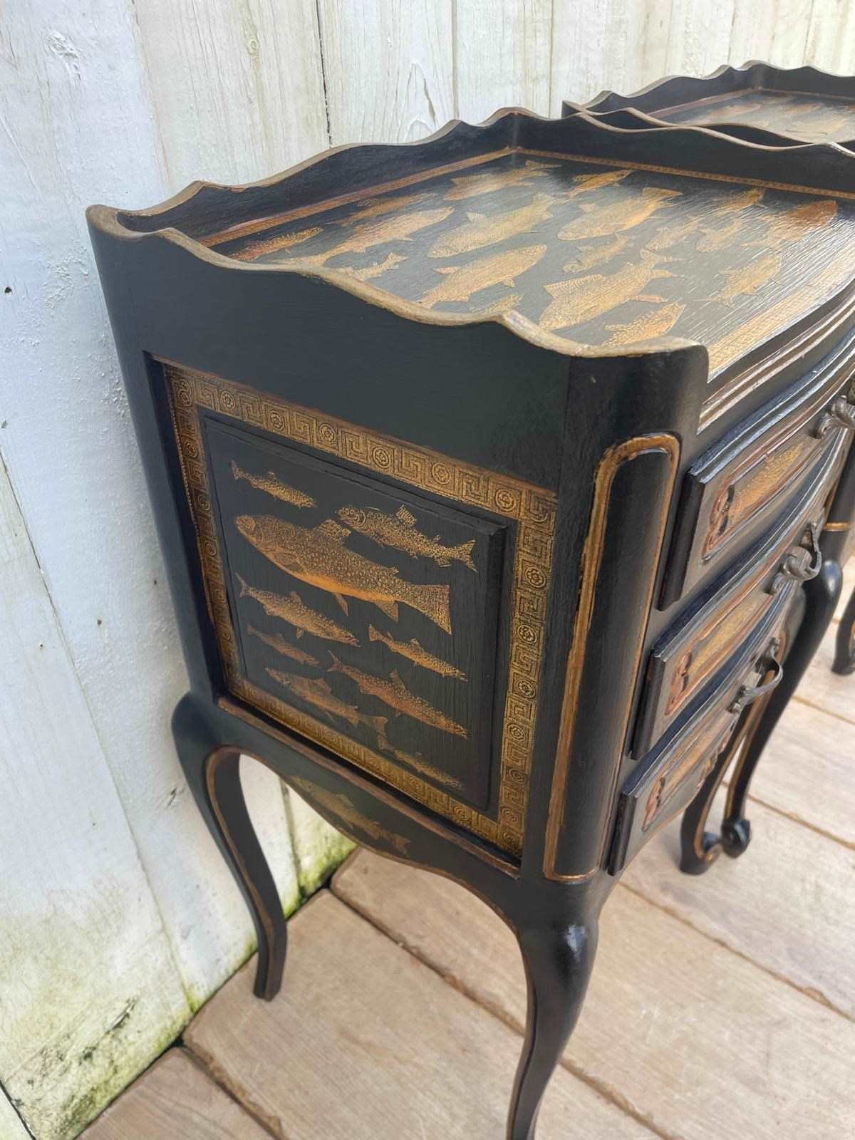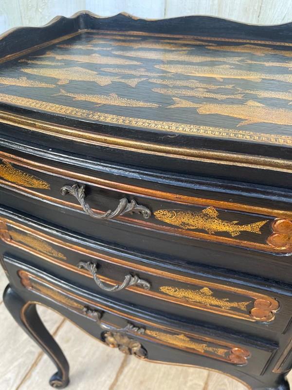 Later painted black with gilt highlights and decorated with fish decoupage.
