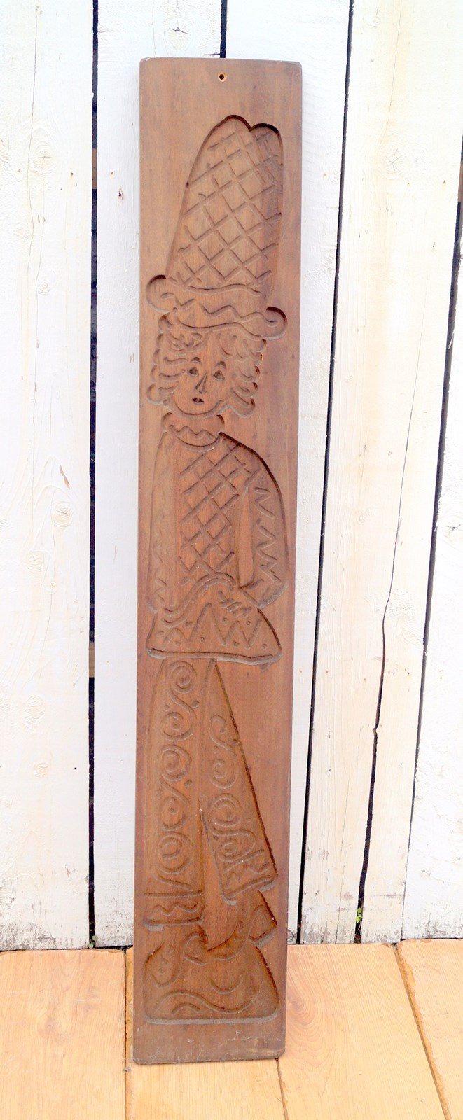 Large Dutch hand- carved vintage wooden gingerbread mould.