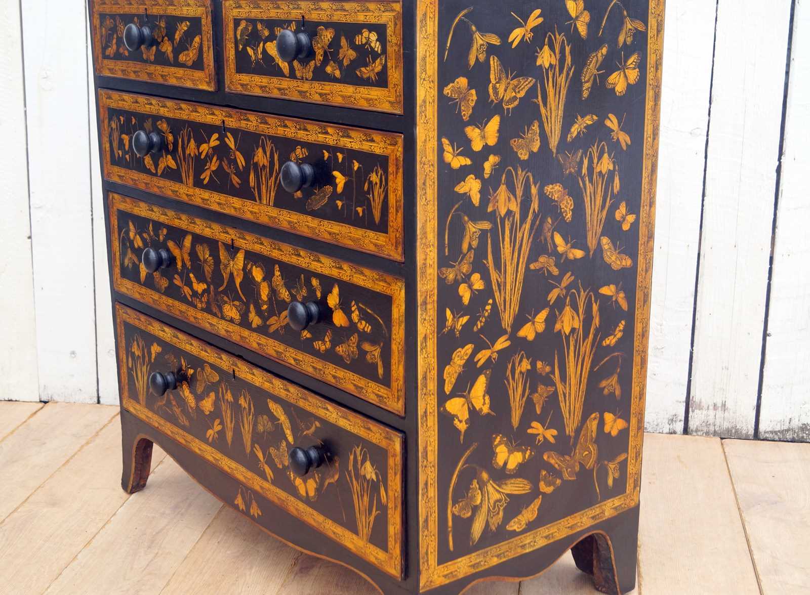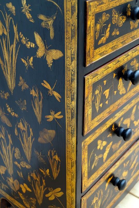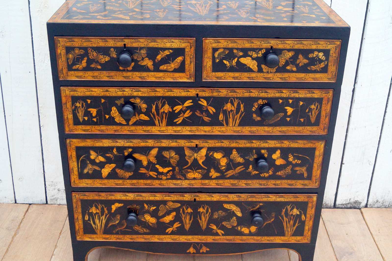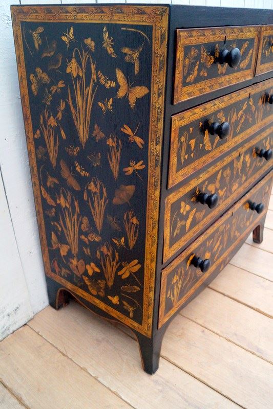 We paint, decorate with decoupage using 18th and 19th century images and end with a lacquer finish.