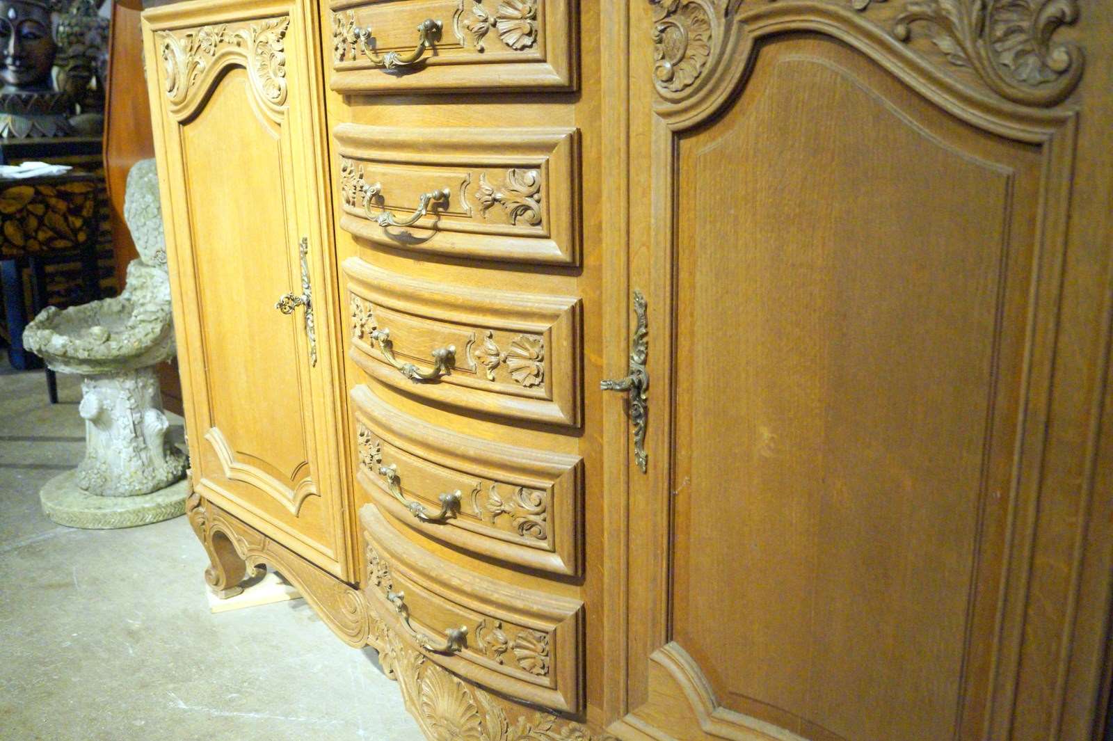 Carving to both drawers and doors.
