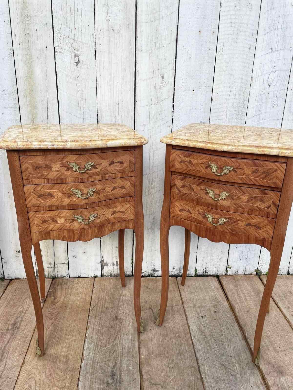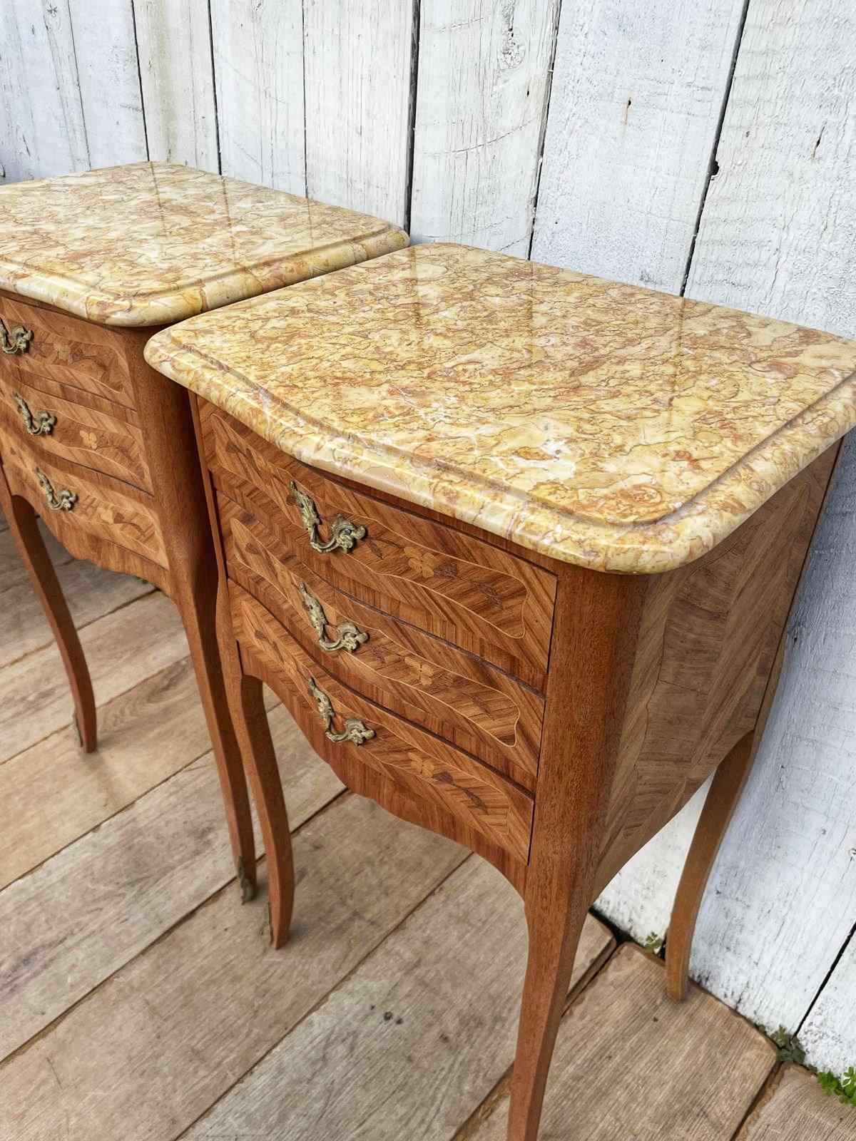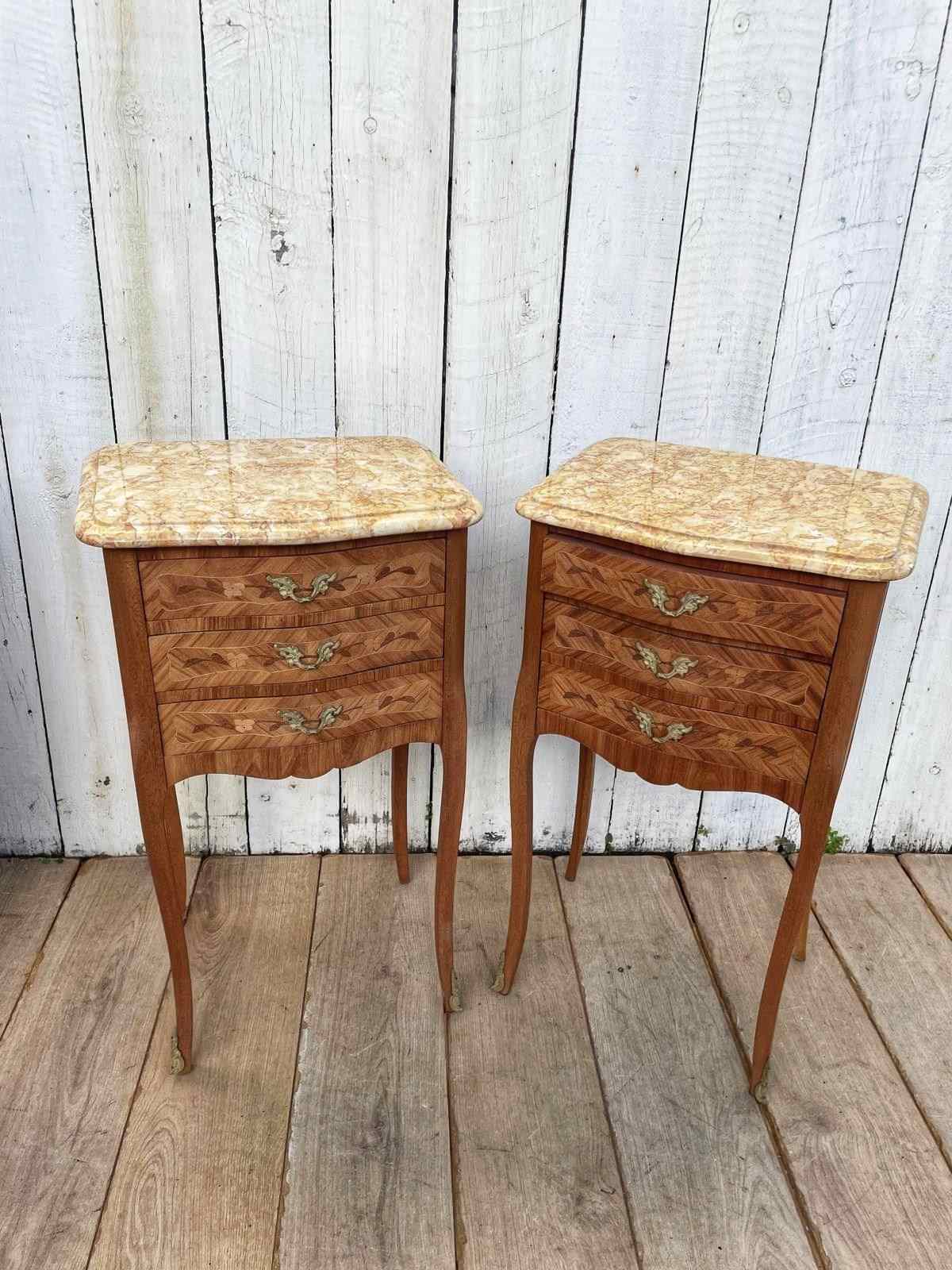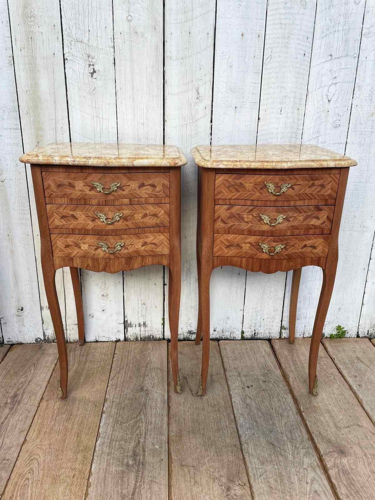 A pair of Louis XV style  marquetry bedside tables.