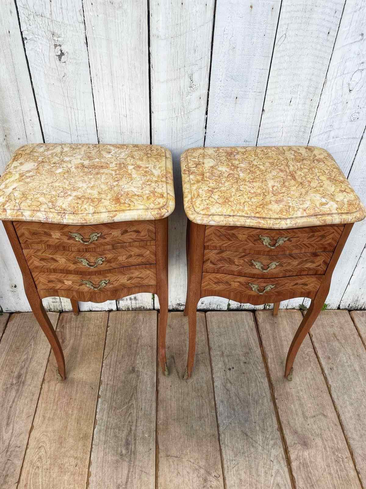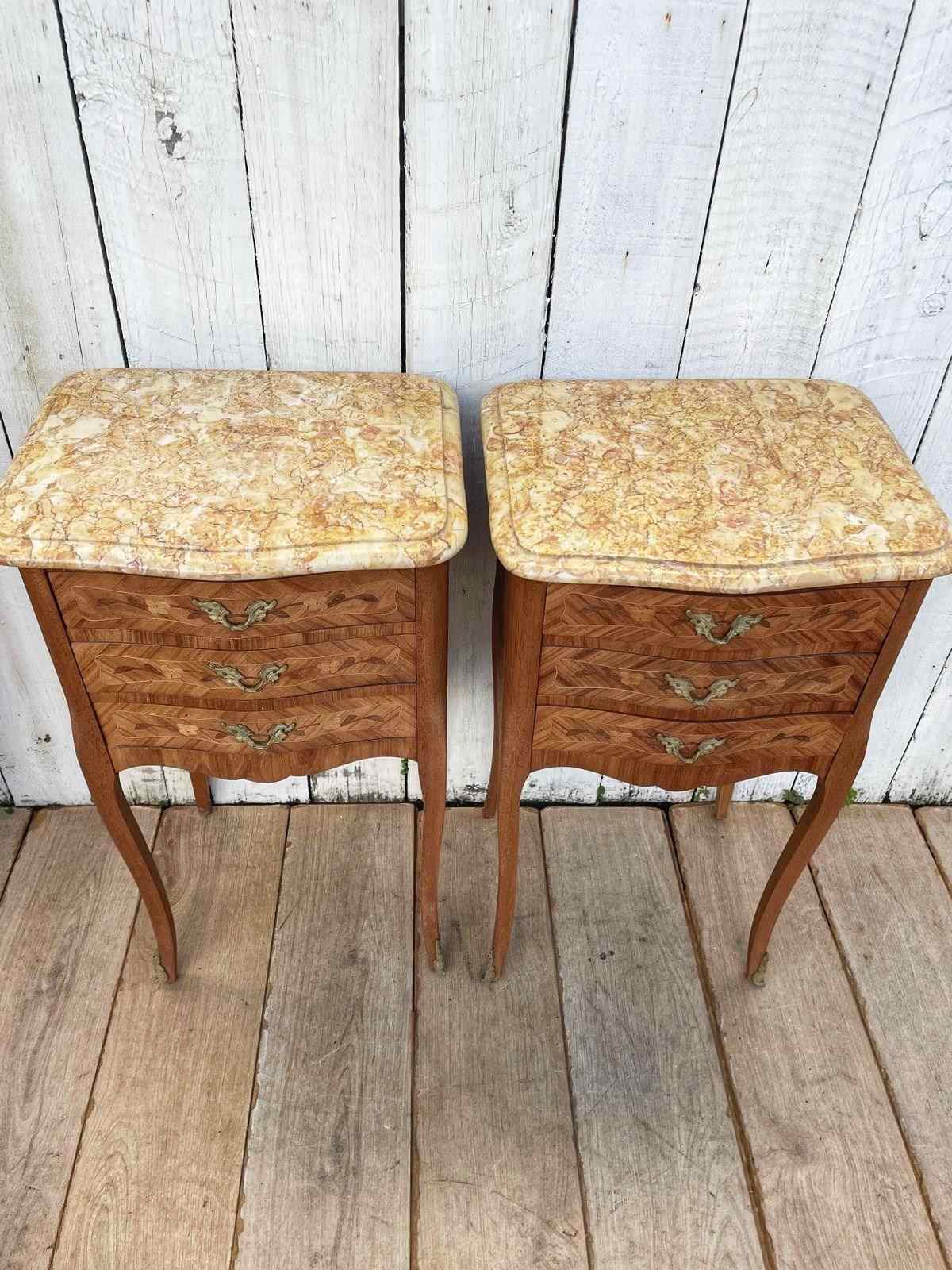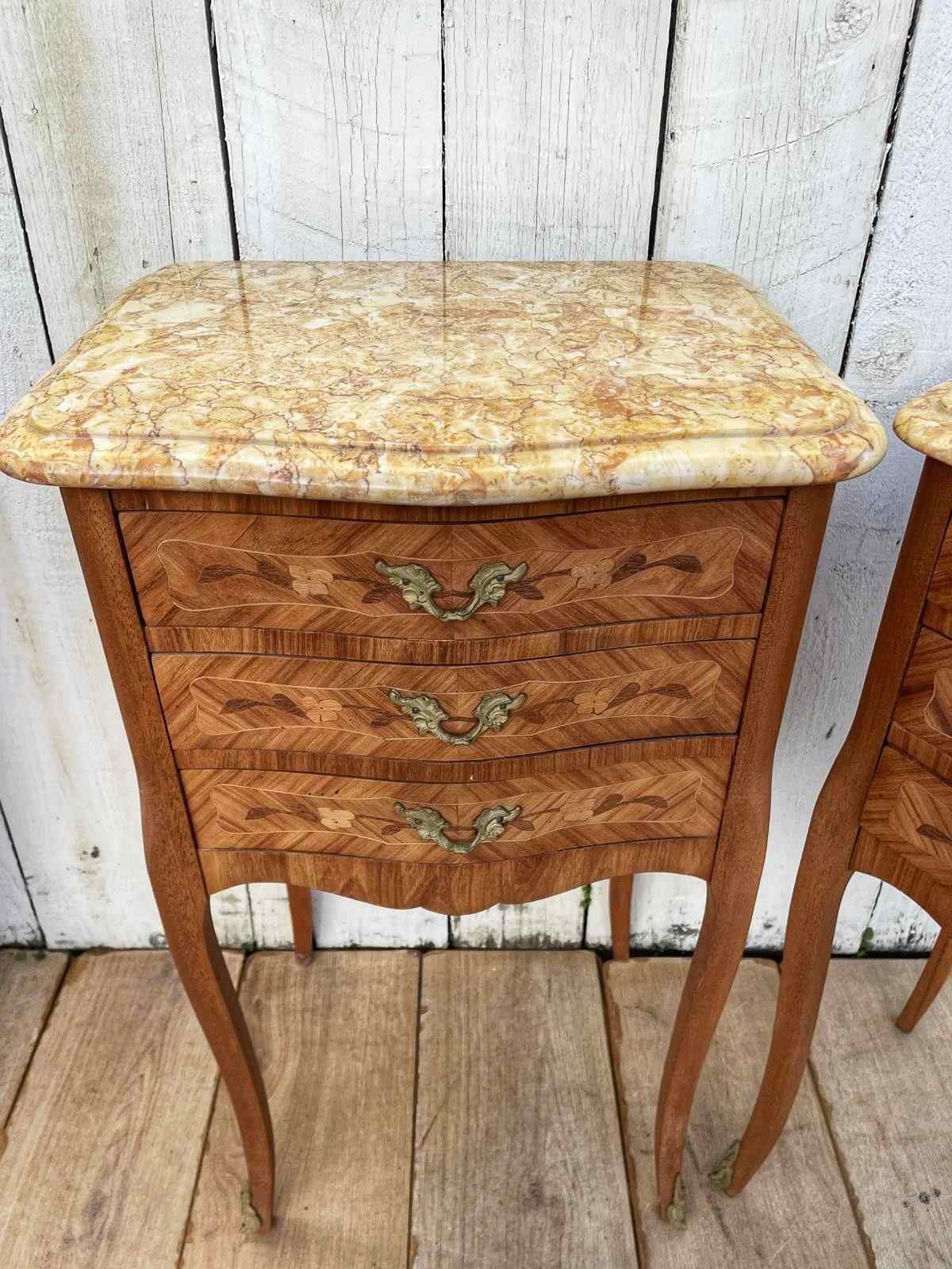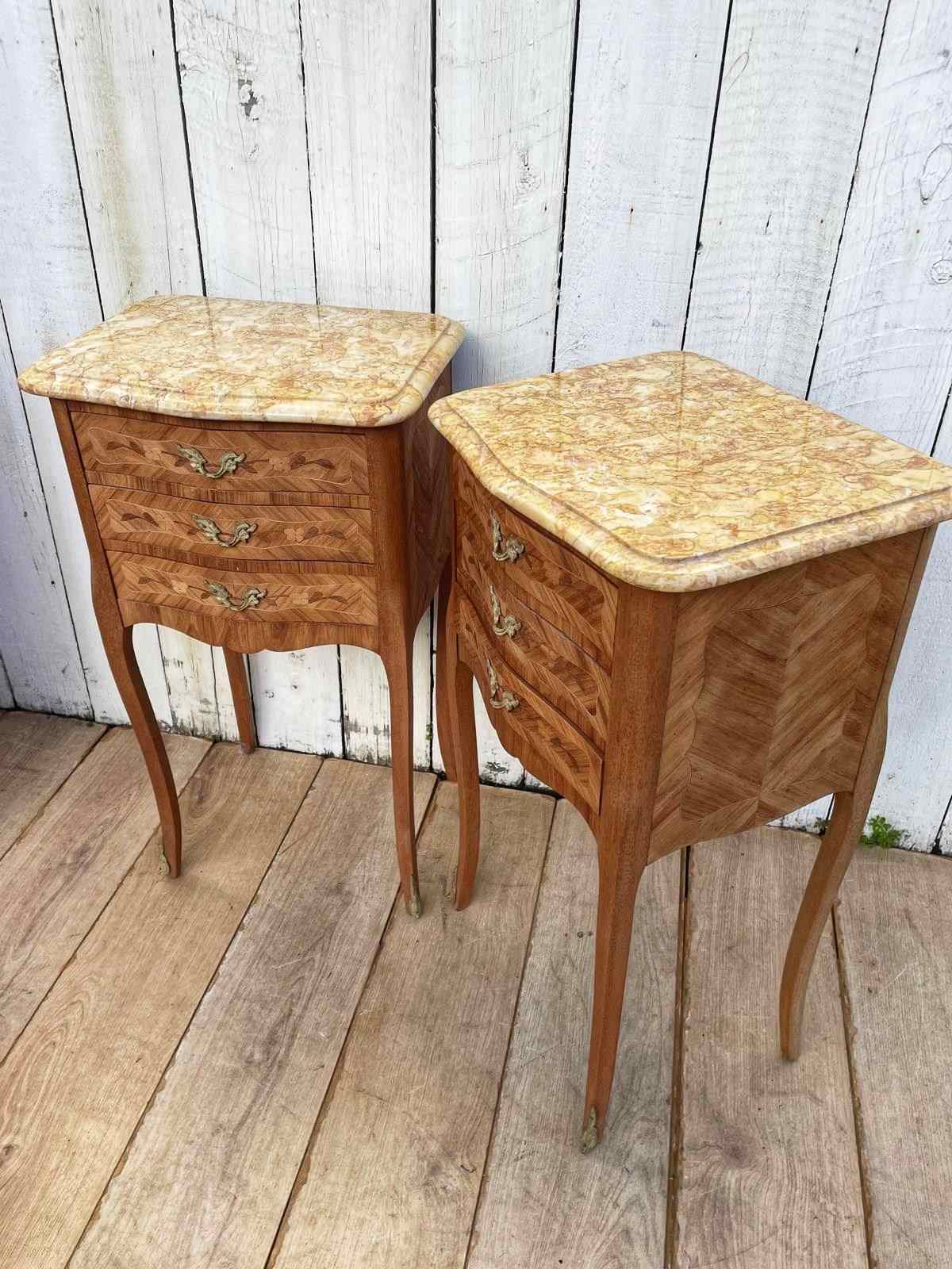 A pair of Louis XV style  marquetry bedside tables.