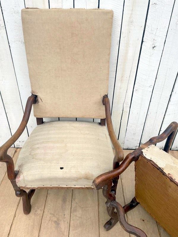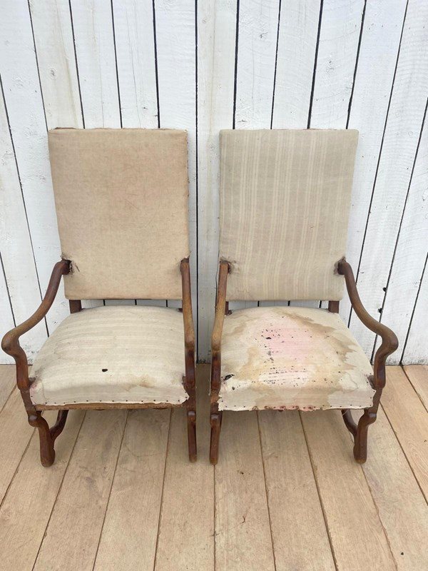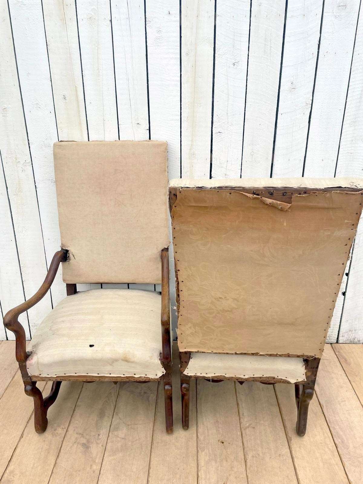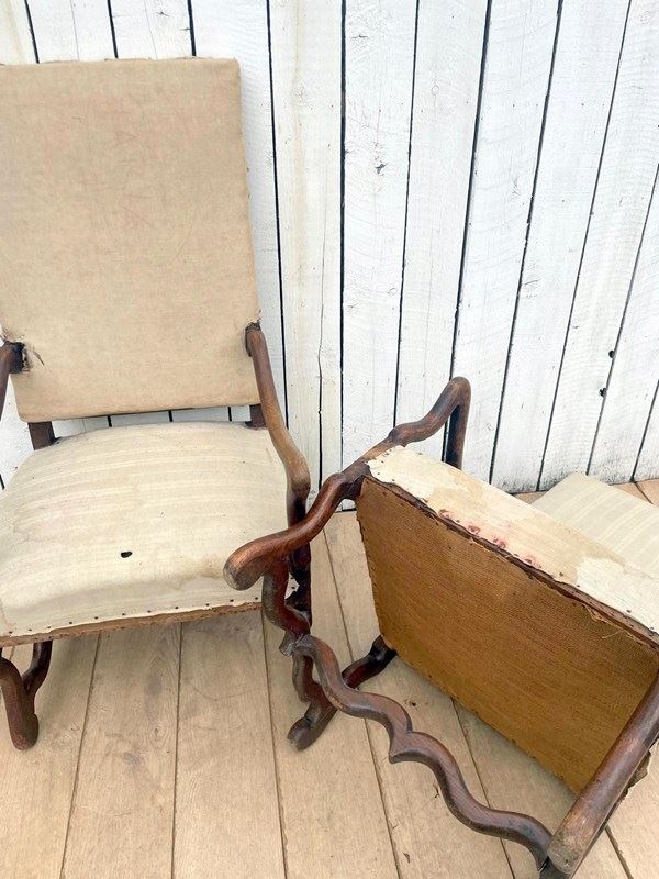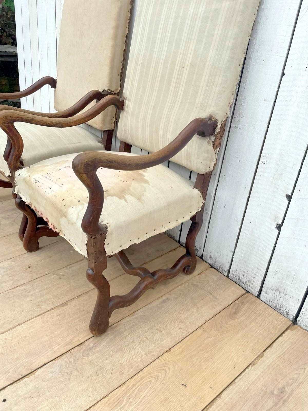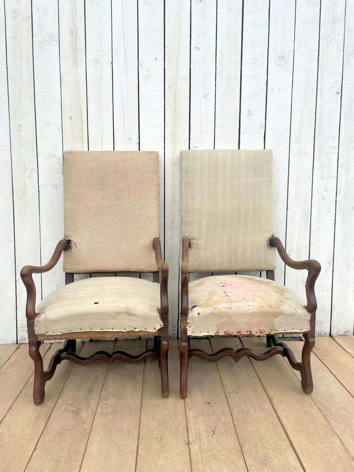 A pair of 19th century oak os de mouton chairs for re-upholstery.