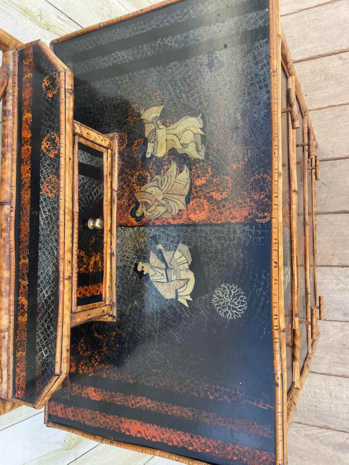 The lacquerwork with oriental figures is all intact.
