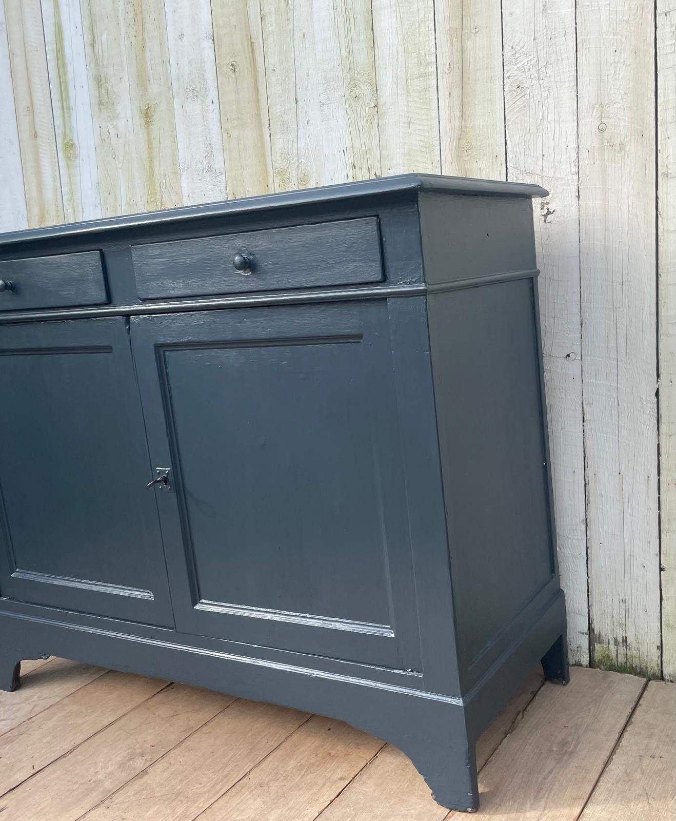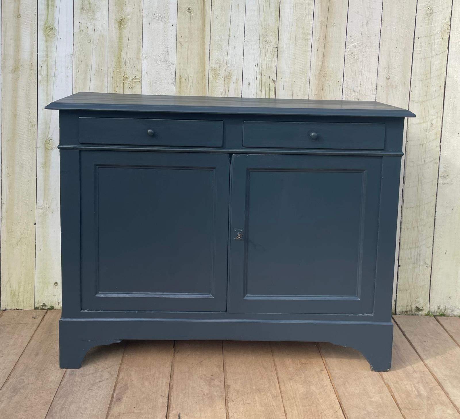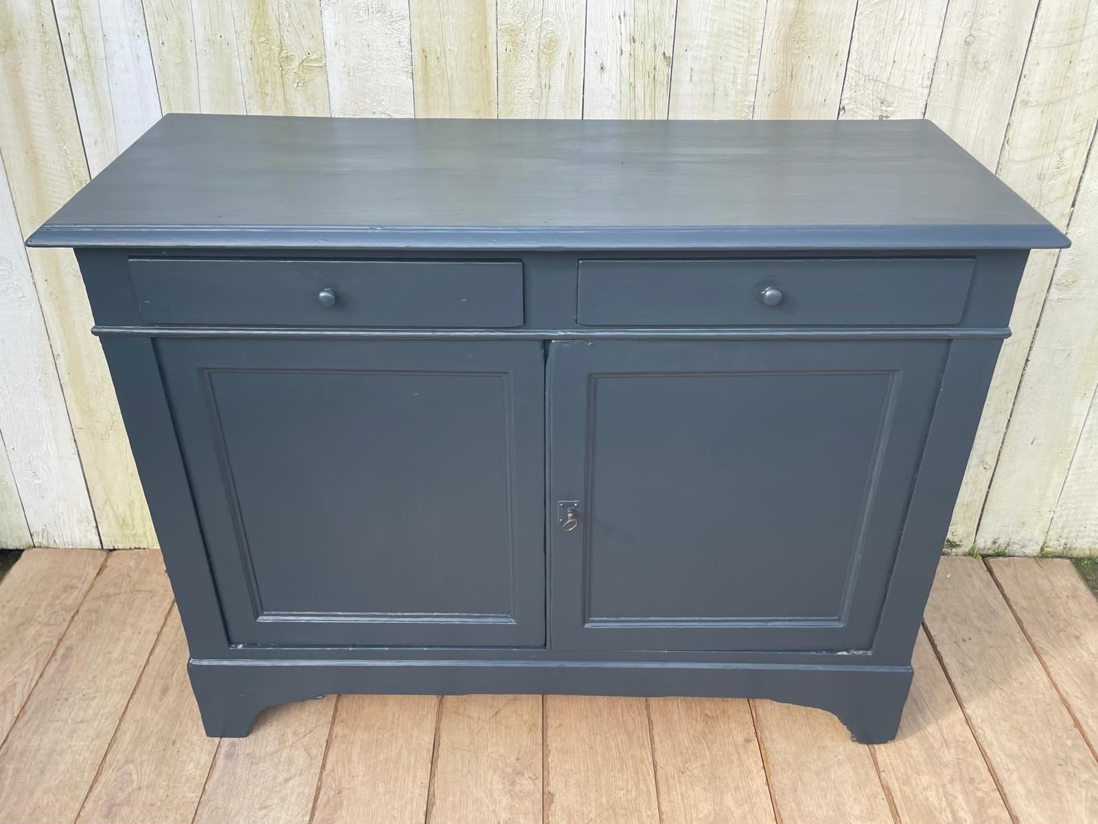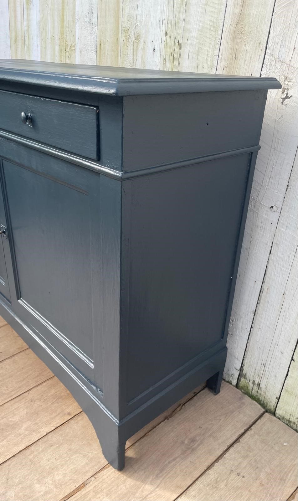 An Enhlish Victorian era cupboard later painted dark grey in Farrow and Ball paint.