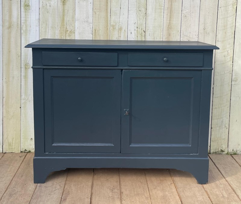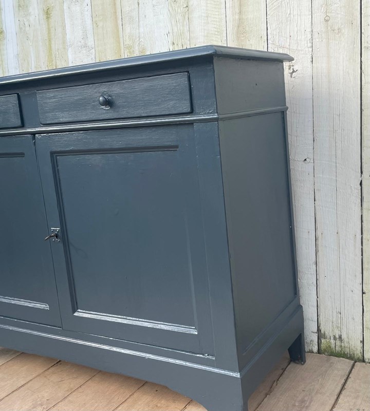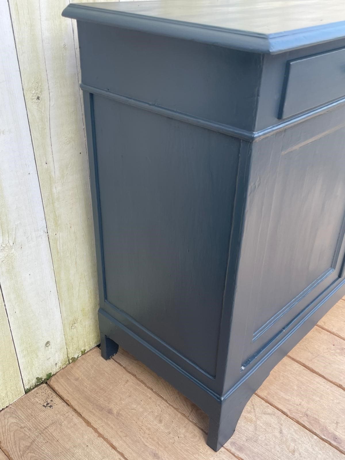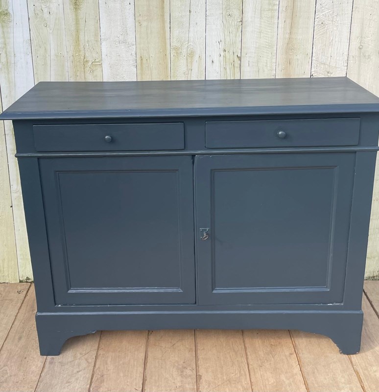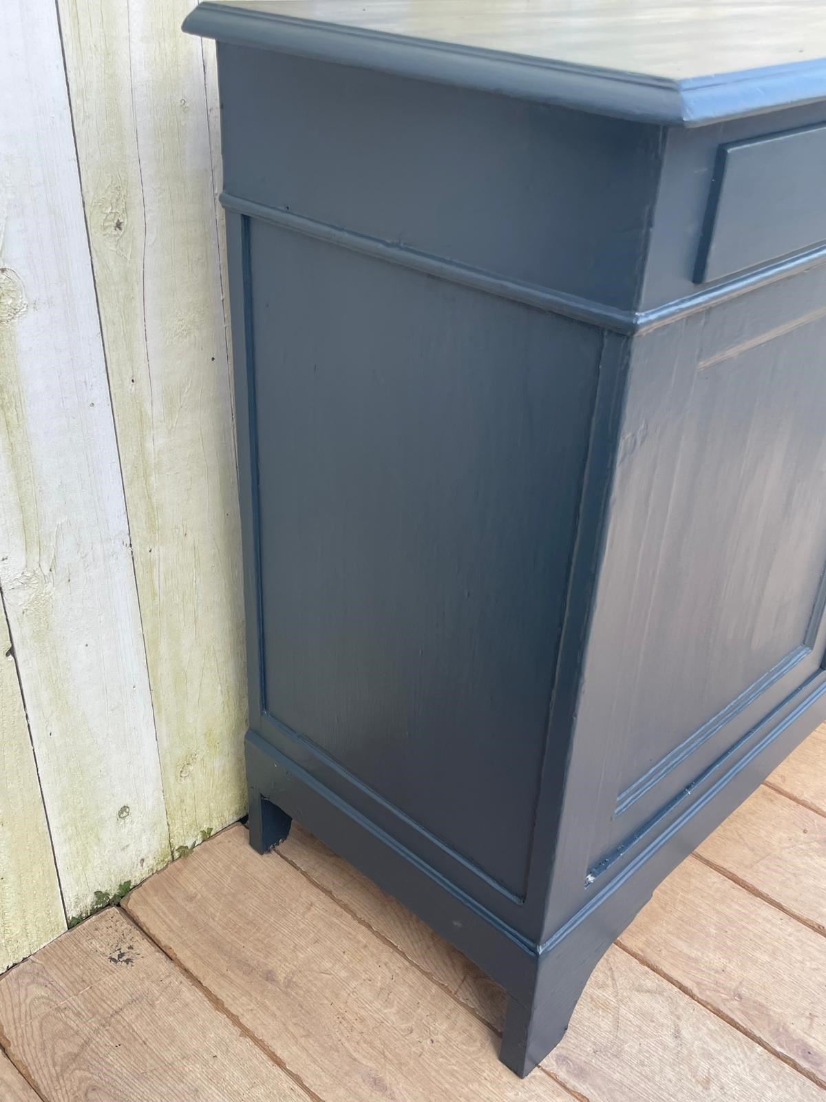 An Enhlish Victorian era cupboard later painted dark grey in Farrow and Ball paint.