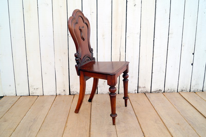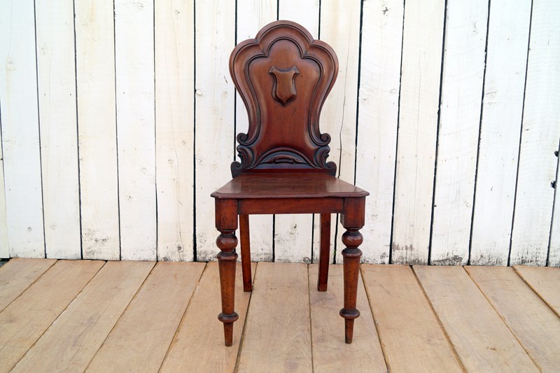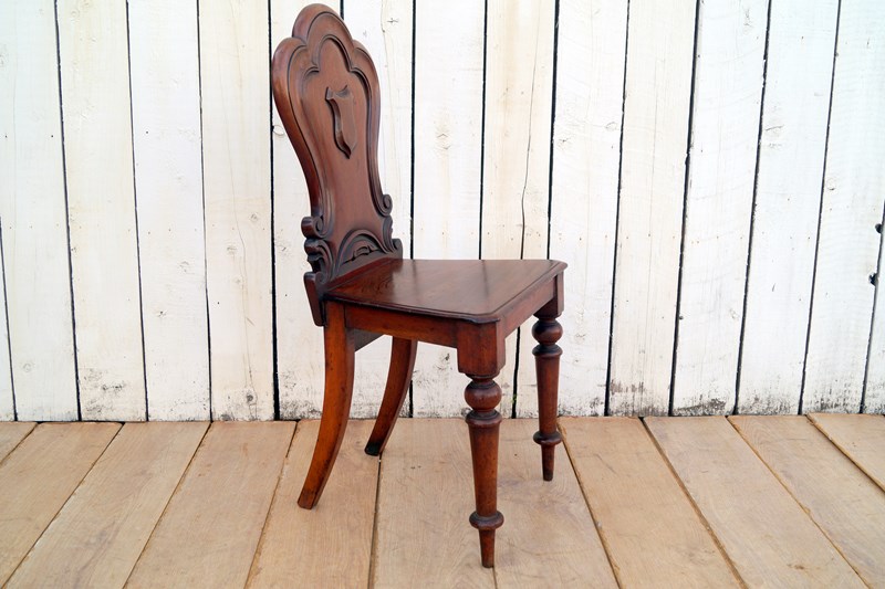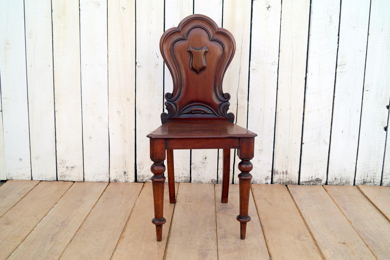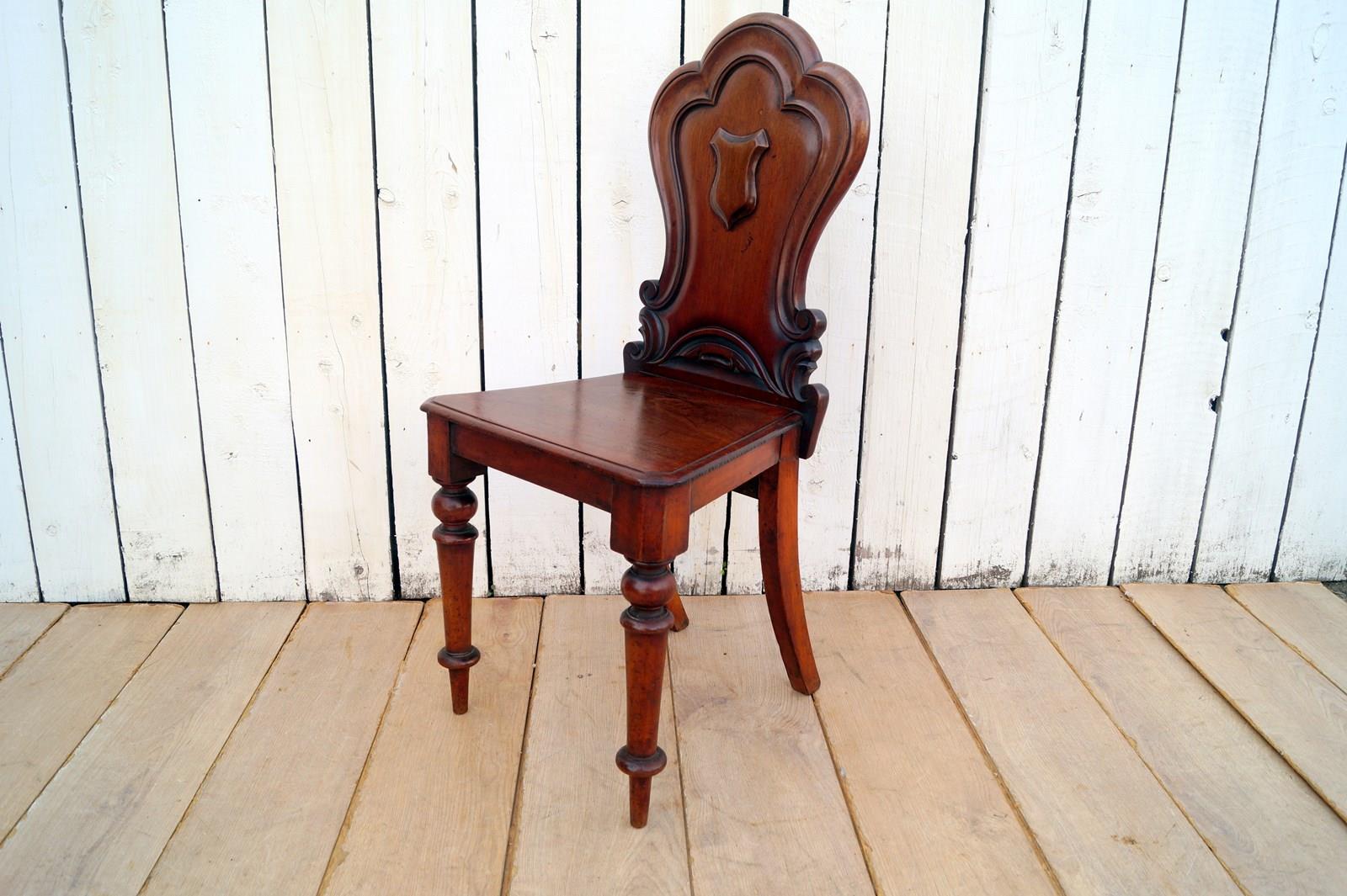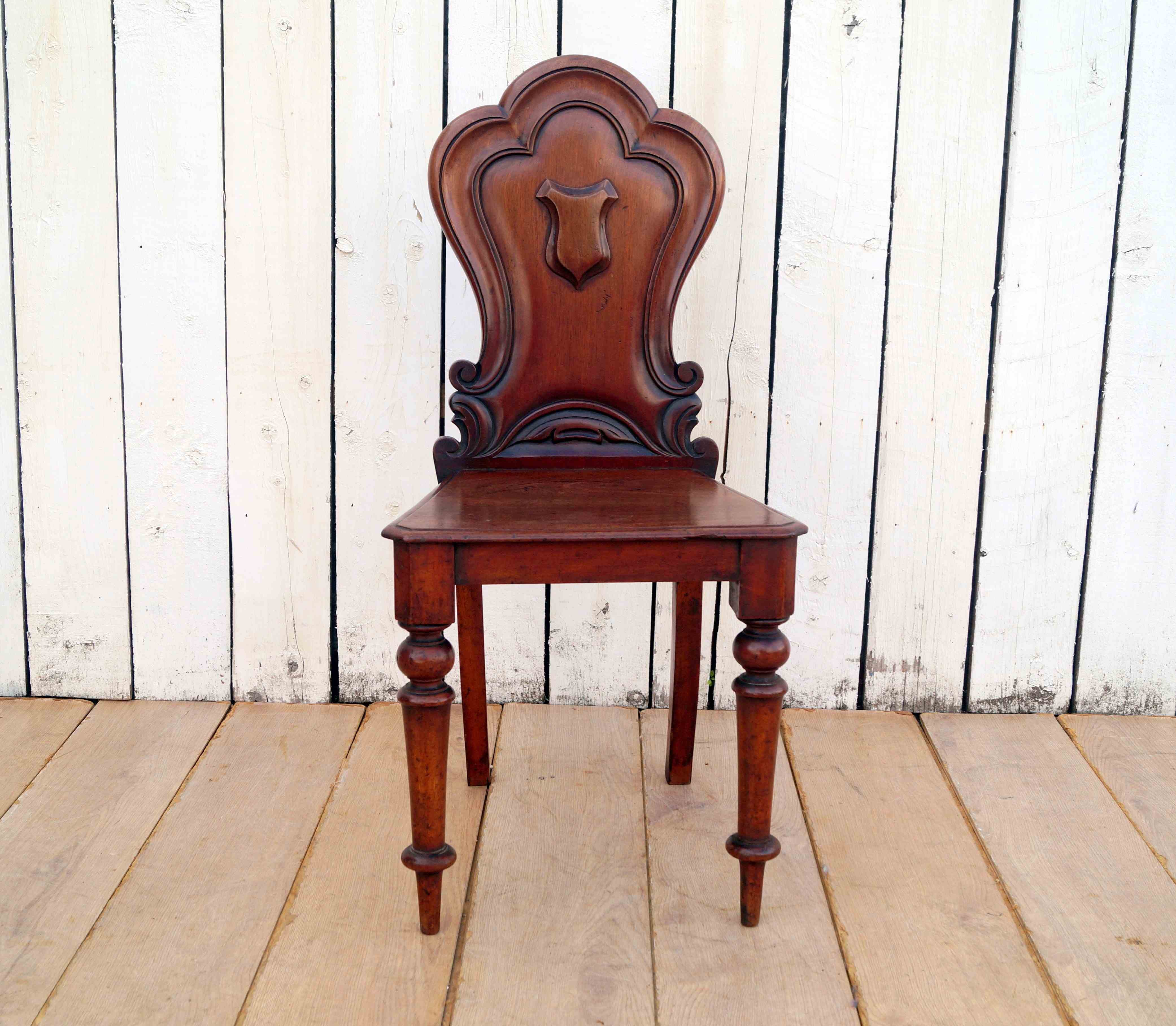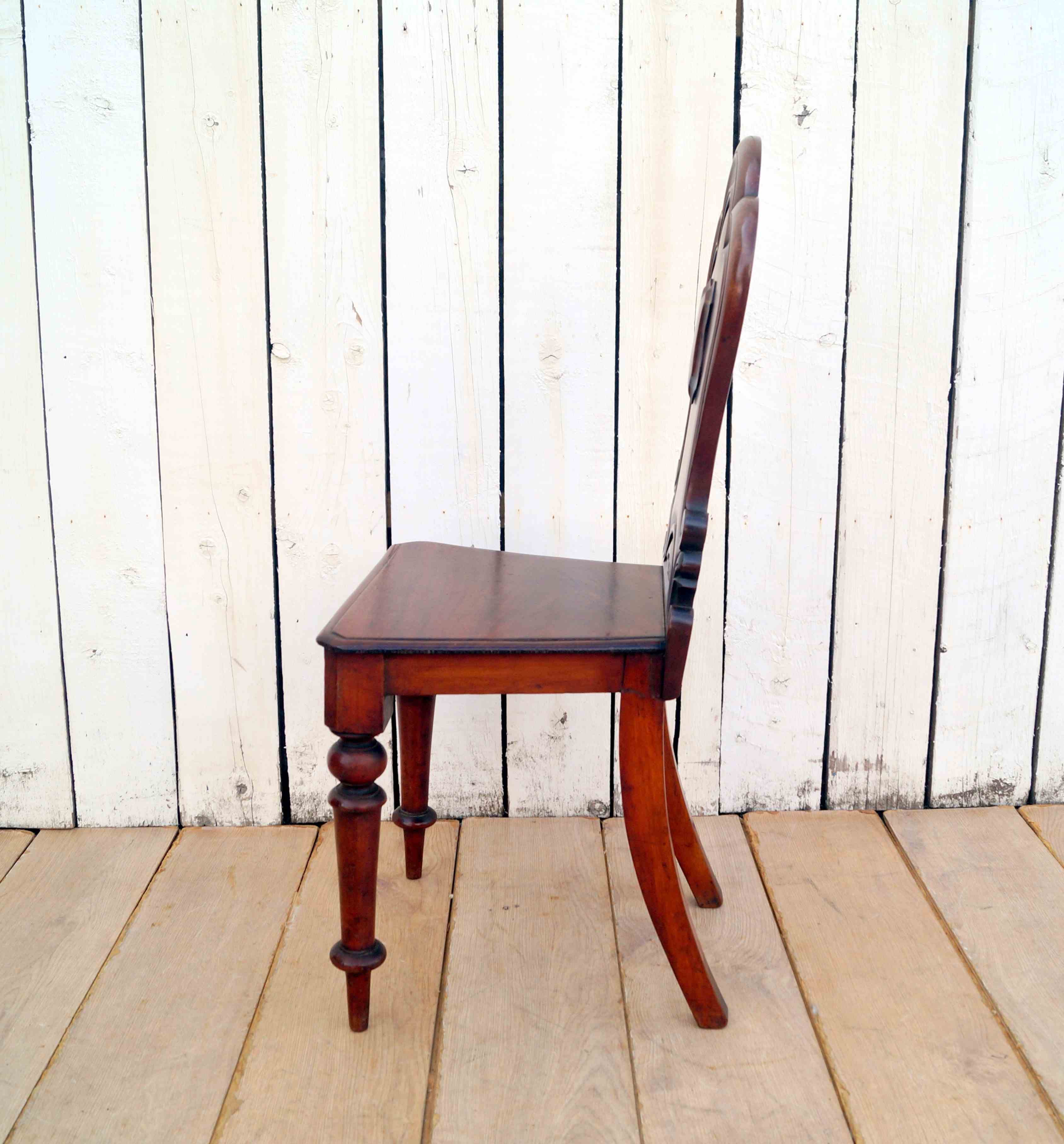 In mahogany this sturdy little chair has decorative carving with a good colour and patina of age.