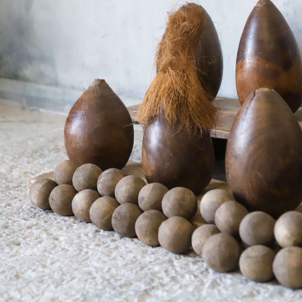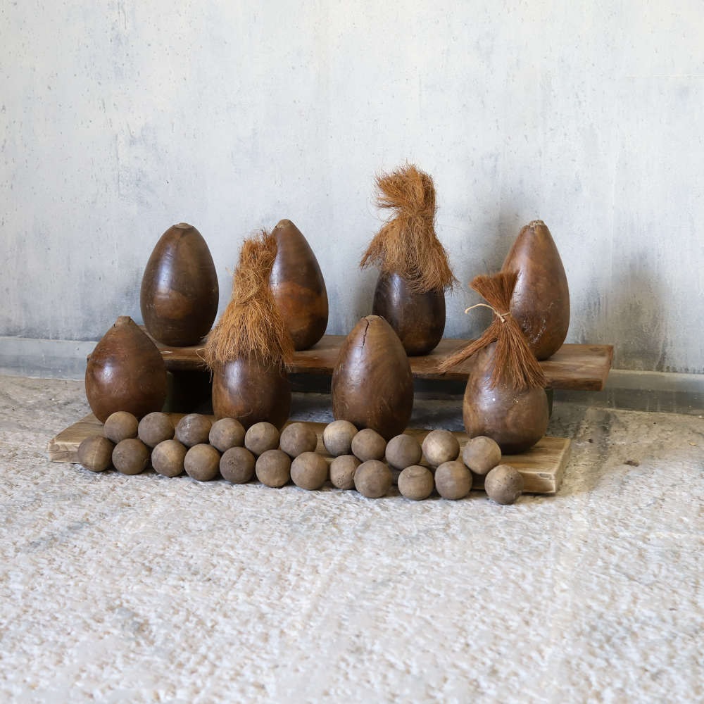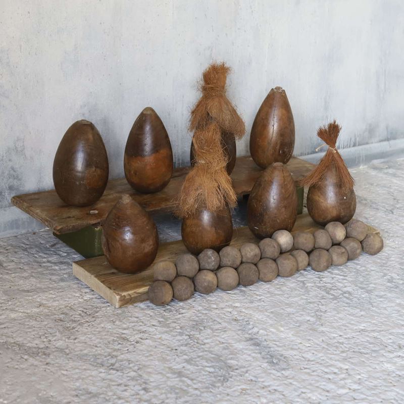 Oh what a lovely bunch of Coconuts. Very rare hand shaped Lignum Vitae Set of 19th Century Fairground Coconuts, described by the old Fairground Folk as ‘Duds’. These would never be dislodged as each Coconut although heavy in its self were filled with either Lead or Stone. These Coconuts are full of charm and a great talking point interior or exterior design pieces. Full of English social History