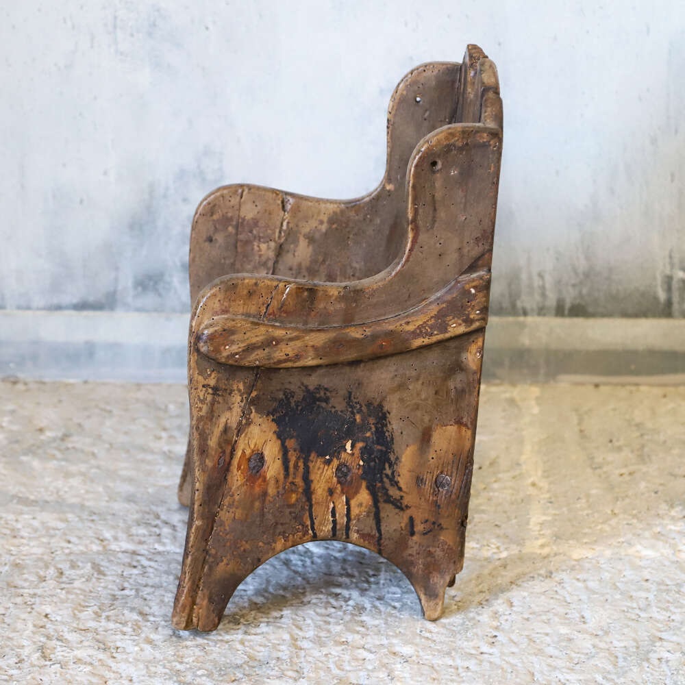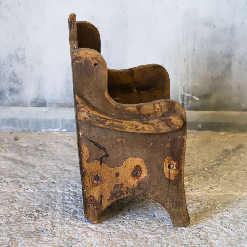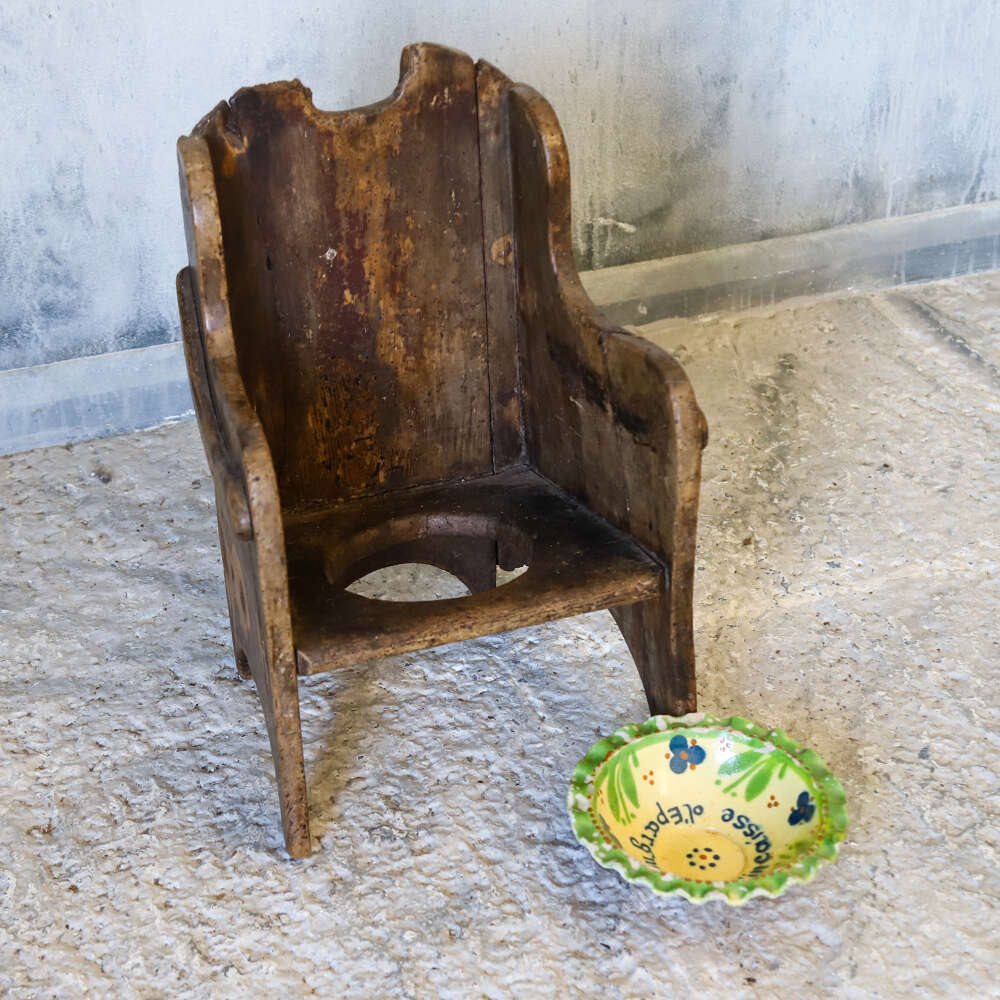 A charming 18th century primitive boarded painted Sycamore child's potty chair originating from the North Wales area.