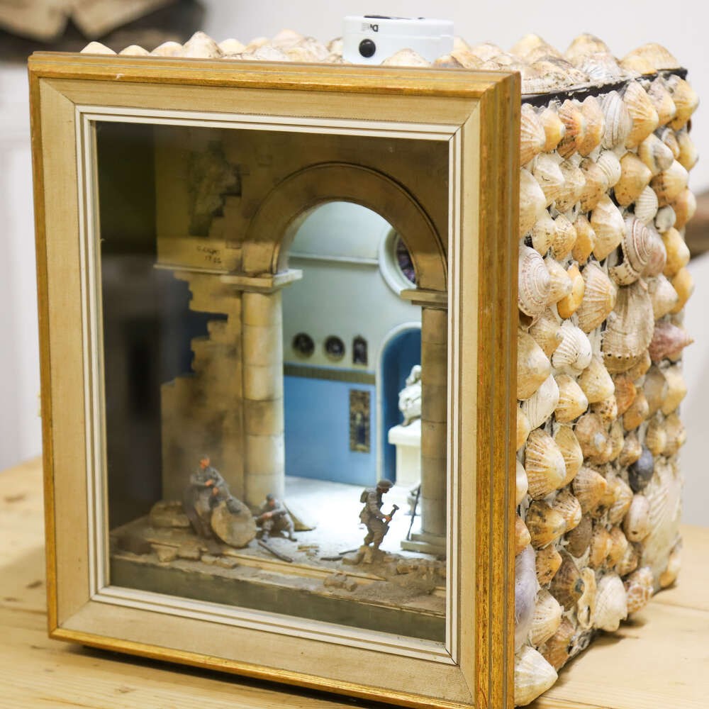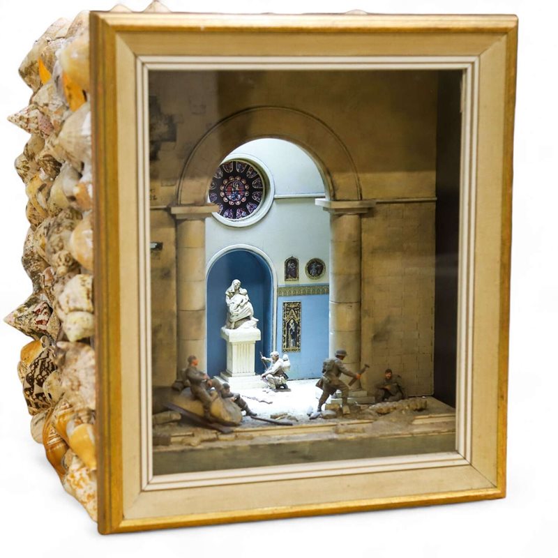 Commemorative 20th Century Diorama depicting WWII British Soldiers sheltering in Church Ruins